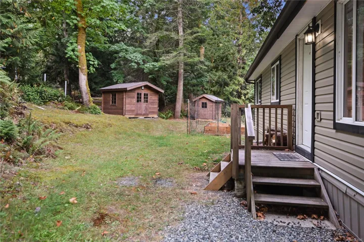 Fully renovated 3 bedroom home on .41 acre lot that is fenced on 3 sides. The property has a nice combination of level areas, a garden, light forest and some rock along the South side that makes it interesting. It backs onto a large acreage that makes it a very private property. A great price for a neat and clean home with several outbuildings. The home is open concept with a wood stove to keep it toasty (also electric baseboard heat) and there is a transfer panel to connect a generator if the power goes out. The outbuildings include: a power-pump house shed, a studio with power and heat, a storage shed and an open firewood shed. Although very private, the location is surprising close and central to the Village and to Berry Point. All measurements are considered approx. & should be verified if important.