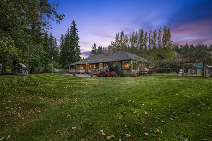 Welcome to 3821 Woodhus Rd! This idyllic horse acreage is situated on a peaceful, no-through road, nestled alongside the stunning Oyster River. The fully fenced property is adorned with numerous heritage fruit trees. The charming 3 bed/2 bath rancher features a spacious kitchen & you’ll love the living room w/ vaulted ceilings, cozy wood-burning fireplace, & french doors that open to the breathtaking backyard and river views. The primary bedroom is a serene sanctuary w/ large WIC, recently renovated ensuite & wood-burning fireplace. Picturesque views throughout create an incredible retreat that must be seen to be believed. Equestrians will appreciate the 3 stall barn with spacious run-outs, complete w/heated tack room, feed room, & hay loft. The rubber crumb riding ring is both thoughtfully designed and generously sized. The 3 bay workshop provides versatile storage options, including an over-height bay with its own driveway, perfect for parking an RV, boat, or trailer!