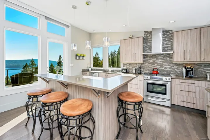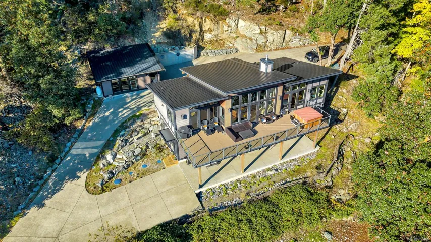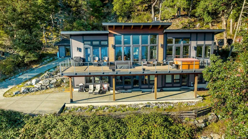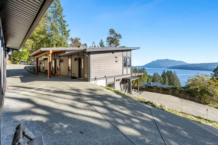 This stunning 3000+sf ocean-view home in Braemuir Estates, on 9+ acres in Maple Bay, captures breathtaking ocean & mountain views from nearly every room. The kitchen features quartz countertops, custom cabinetry, & quality ss appliances, w/access to an expansive deck. Open dining and living areas boast a beautiful propane fireplace, hardwood flooring, & add’l deck access. Primary bedroom offers a walk-in closet & luxurious ensuite. 2nd bedroom w/ensuite, a 2-piece main bath, and a laundry room complete the main level. The lower level incl 2 more bedrooms, a storage room w/a dog wash, & private 1-bd in-law suite w/2 separate entrances & covered deck. Additional features incl a new heat pump, heated tile floors in most bathrooms, a detached garage with stunning ocean and mountain views (ideal for use as a workout room), propane BBQ hookups, and a circular cement driveway. This home is surrounded by hiking and biking trails on Maple Mountain, making it a paradise for outdoor enthusiasts.