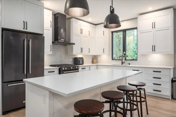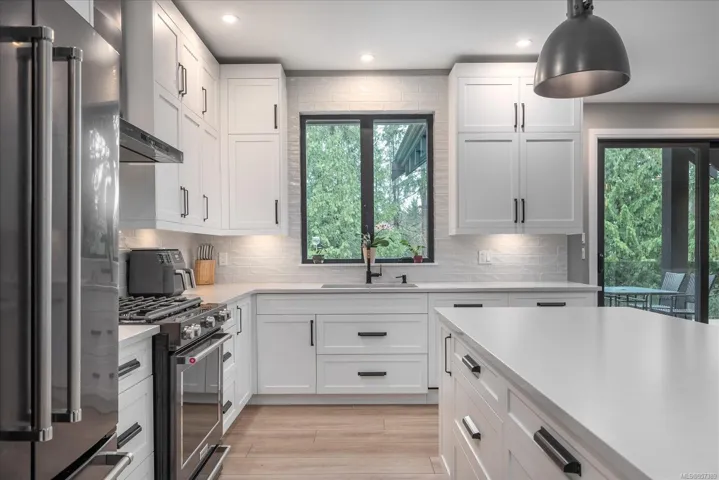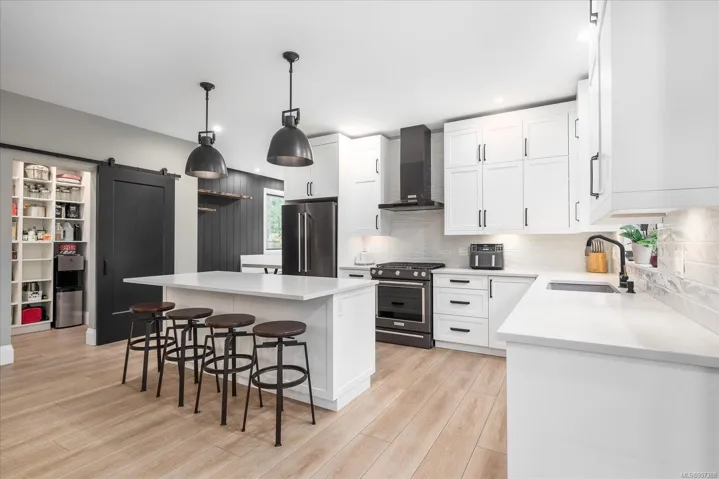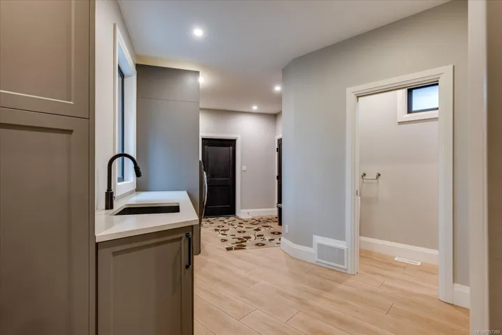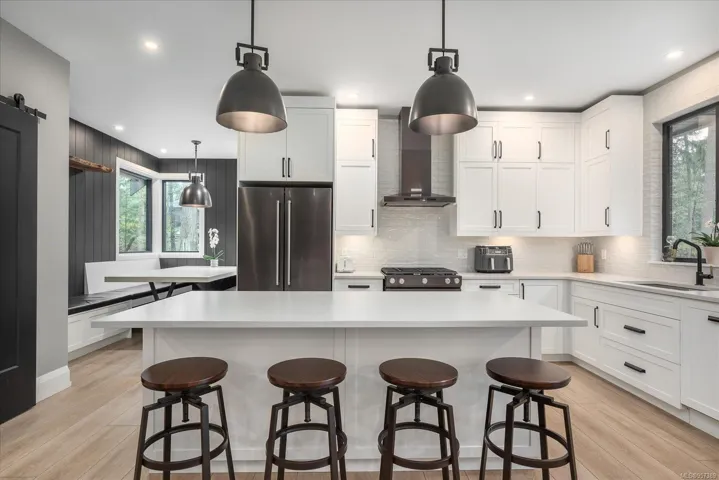 Exquisite Executive Residence with Separate 2 bed/2 bath Carriage House nestled within a serene forest-like setting, mere minutes from the town’s amenities, features meticulous design & attention to detail. Crafted with careful consideration, the main residence boasts 4 beds, 5 baths, custom clear cedar sauna with attached change room & a heated triple car garage. The master has deck access, walk-in closet, & ensuite with custom-built shower, touchpad controls, heated floors, offers a luxurious retreat. Impeccable craftsmanship is evident such as the grand fir door, custom single stringer stairs. The spacious floor plan is ideal for entertaining. Frameless glass panels overlook the tranquil backyard, creating a seamless indoor-outdoor flow, enhancing the ambiance of relaxation. The lower level features an additional bed, Livingroom, built in bar & woodstove. Pre-wired for a Hot tub & pool, the space is primed for luxurious additions, including an outdoor shower. All data & meas approx