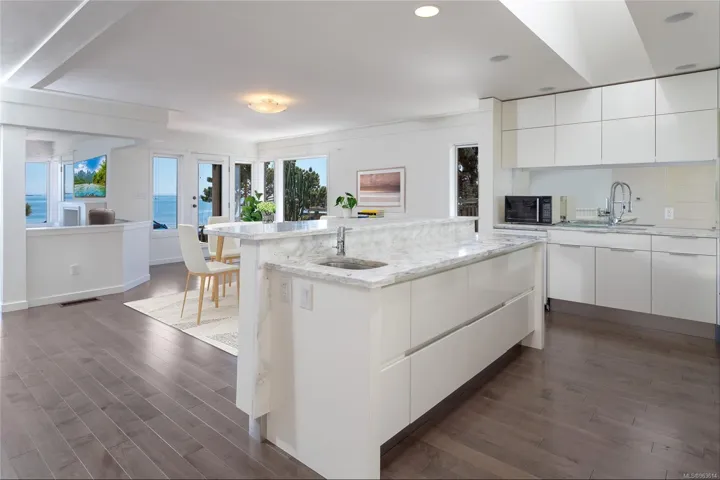 It is a privilege and an honour to present this one-level beachfront home on Willows Beach in renowned Oak Bay in Victoria. This magnificent 2600+ square foot home offers spectacular ocean views throughout the principal rooms and primary bedroom. The beachfront is literally ten steps away with breathtaking views of the Chatham Islands and Mt. Baker. An abundance of natural light fills the home all year long. Open concept living with expansive kitchen, living & family areas and den all with panoramic ocean views. Kitchen is a gourmet cook’s delight! Private west facing courtyard patio, and an east facing sunken patio in the front right across from the beach. Future potential for a roof top deck too! Situated on over 10,000 square feet lot, enjoy the bonus of a detached garage at the back of the property with additional storage out of view. In sought after waterfront across from Willows Beach, you will fall in love with this 4 bed/4 bath 1988 home close to parks, biking paths & more.