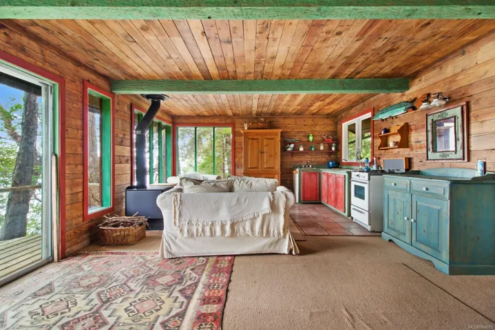 There are two houses on the property with amazing wood reclaimed from an old barn featured in one and the other from wood milled on the island. The quality craftsmanship of the buildings and finishes provide a comfort for body and mind. Both places are cozy and warm, perfect for curling up to look at the incredible views, read a book and let the stresses in life melt away.
