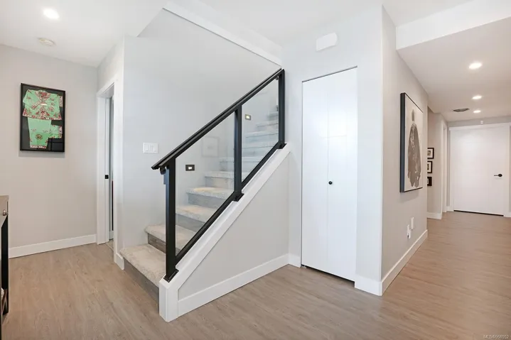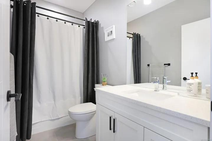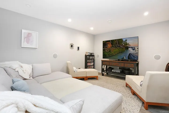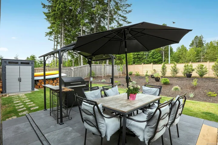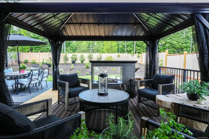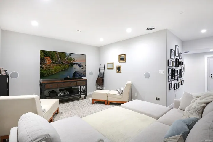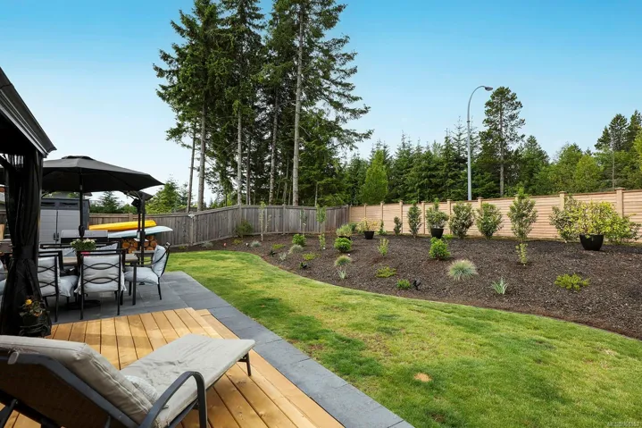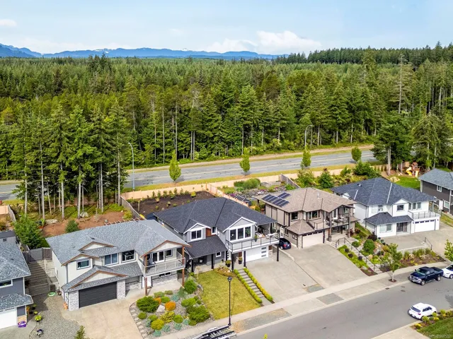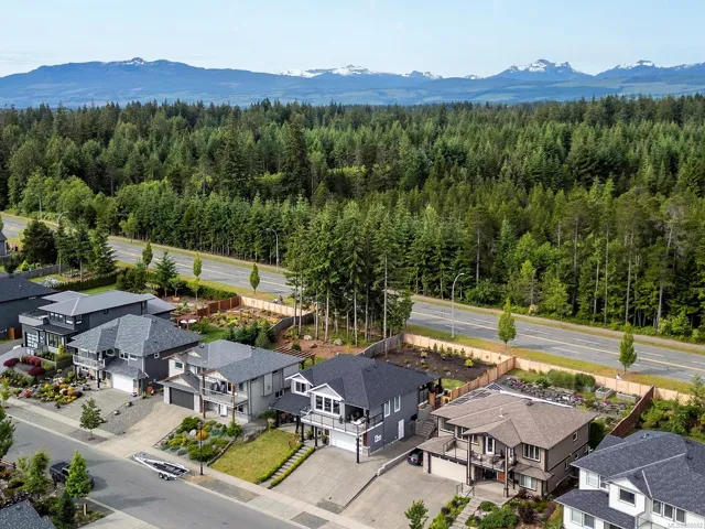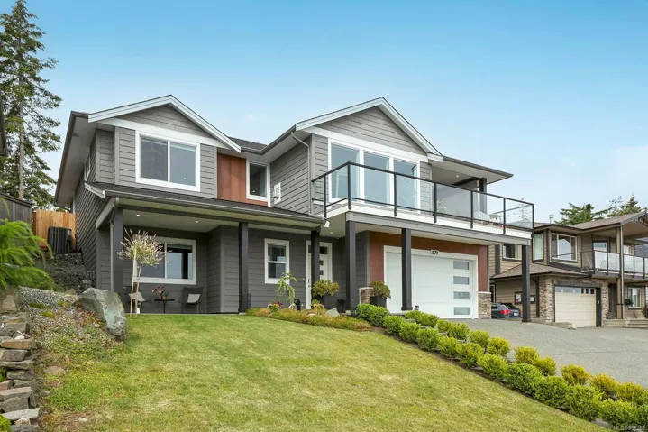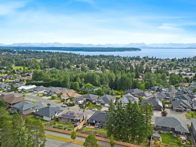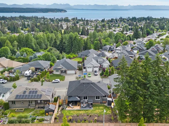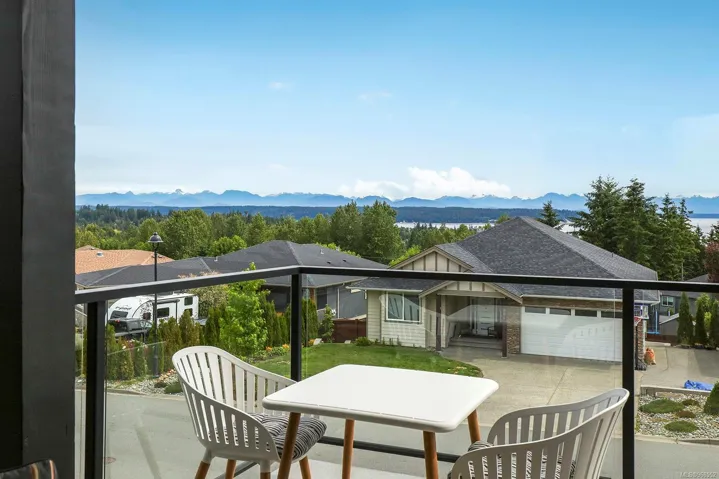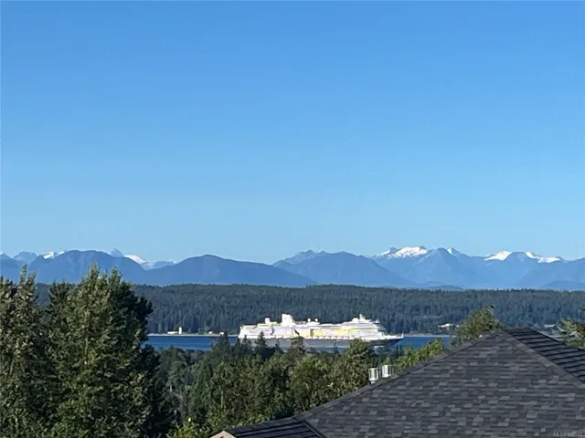 Spectacular views of Discovery Passage, the Coast Mountains, and the city lights below from your front deck, dining rm, vaulted living rm, and primary bedroom. This well-built, meticulously maintained 2019 home spans 2652 sq ft over 2 levels, featuring an open plan perfect for entertaining, basking in morning light and vistas. The chef will love the shaker kitchen cabinets, expansive quartz counters, and stainless appliances, including an induction range. The primary bedroom boasts a walk-in closet, spa ensuite with drop-in soaker tub, sep. tiled glass shower, quartz counters, and heated floors. Three additional bedrooms and two more 4-piece baths, both with quartz counters and heated floors, complete the home. The lower level offers a home theatre, built-in speakers for movie night. Easy-care, durable high-grade vinyl flooring throughout. The backyard features a new deck, gazebo, and grilling pavilion. Fruit trees adorn the fully-fenced west-facing yard. Nothing to do but move in!