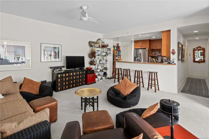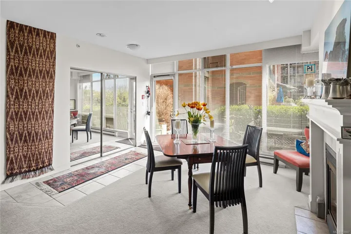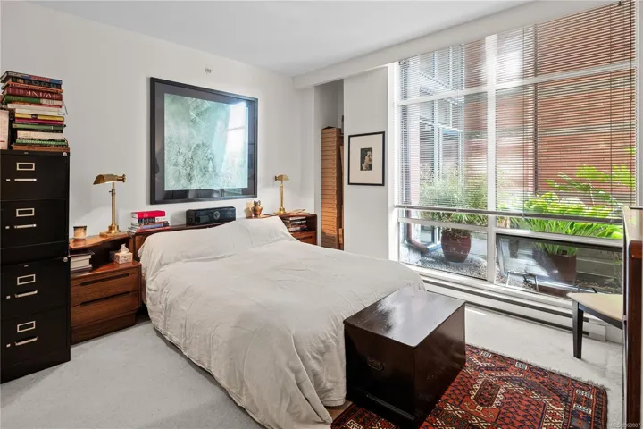 MOTIVATED SELLER, MAKE AN OFFER! A rare Work/Live unit at Prestigious Shoal Point, this lovely ground level unit enjoys a courtyard view. The living room/dining area is very spacious with large windows allowing lots of natural light. The kitchen features a gas cooktop stove, a pantry and a peninsula with barstool seating, perfect for entertaining! Down the hall is the bedroom with a walk in closet and a large bathroom with a walk in shower and a separate tub. Great wall space for artwork! Perfect location for those with a dog with a park nearby and the Dallas Road walkway along the ocean. Biking paths are nearby as well as restaurants, grocery, library and downtown. Enjoy the many amenities such as an indoor 25m lap pool, fitness centre, sauna, steam, whirlpool, putting green, library, workshop and concierge. There is a wonderful community at Shoal Point. Happy hour on Friday nights!