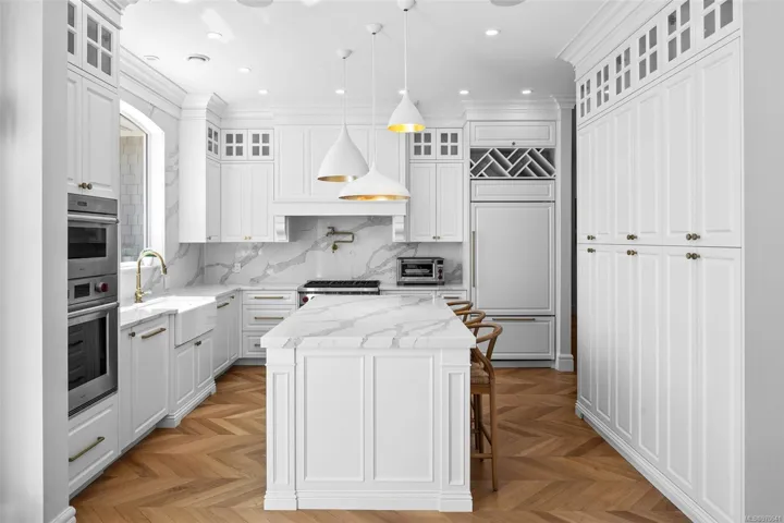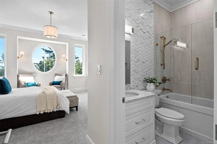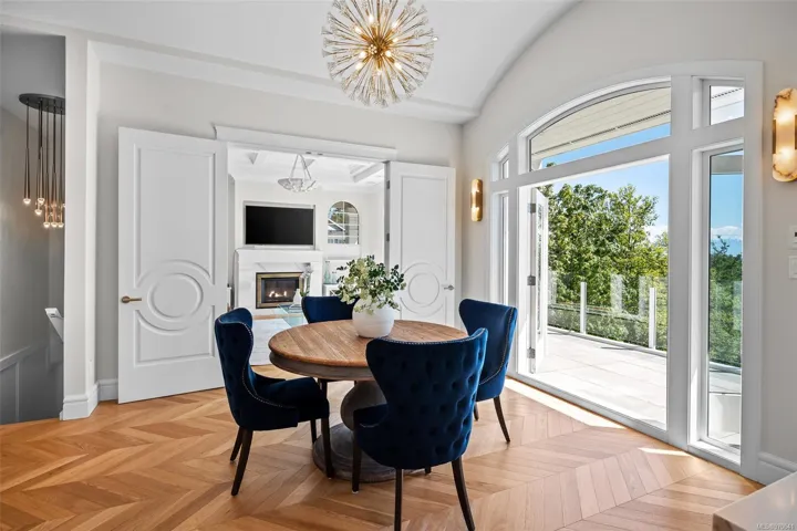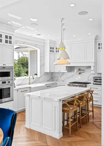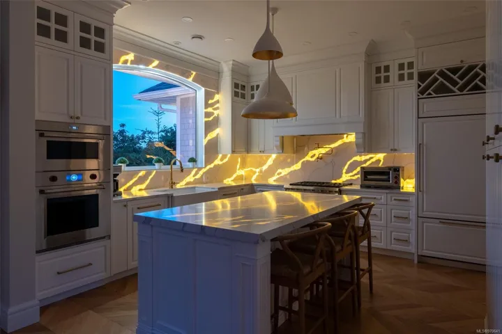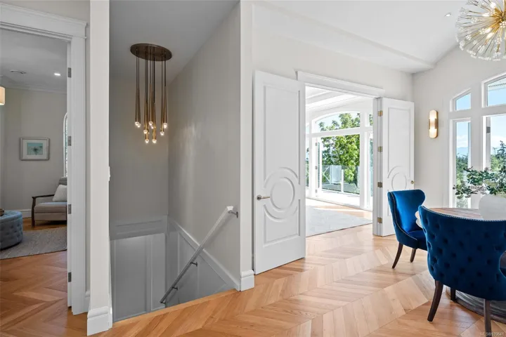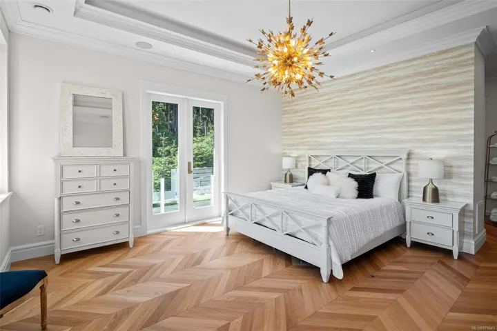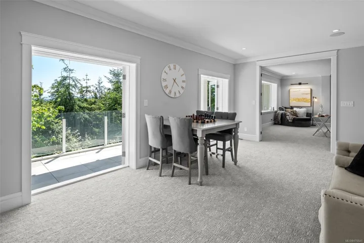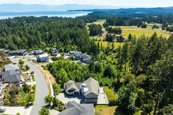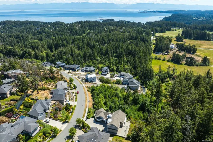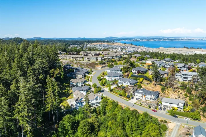 Looking for privacy & space with nature at your doorstep? Prestigious area “ The Bluffs” at on Pelican Drive at Royal Bay. Offering romantic sunsets, ocean, snow- capped mountain & valley views adjacent to gorgeous private park land and a 10 acre farm with trees at the back of your south-west facing property ( 12,197) square ft lot. This lovely home borders Metchosin & is just a 2 min drive to all your essential needs. Featuring a like- new 2021 custom built home 5 beds 6 baths w/1 or 2 bed/2 bath suite with wet bar, entertainment area, games room & 2 large storage rooms. Upper features: 2 primary beds on main with 2 ensuite baths (4pce+ 5 pce), 2 walk in large his/ her closets. The 3rd bedroom could be an office or a den. Huge potential for multiple family members to live comfortably & have lots of space to enjoy privacy. Grand entry & arched barrel vaulted ceiling, chevron pattered wood flooring throughout upper, quartz countertops with back-lit translucent veining on back splash.