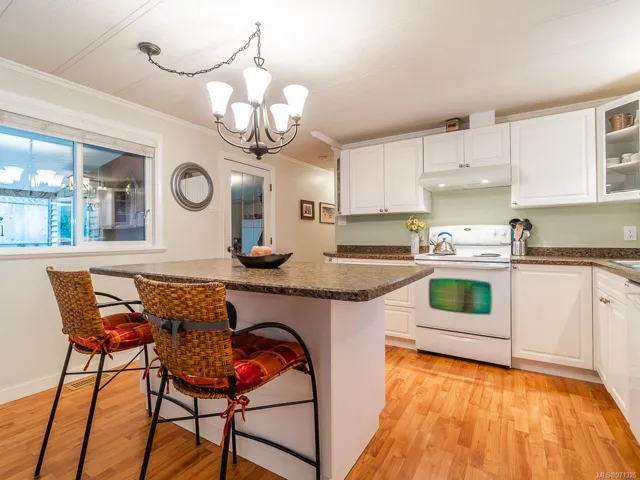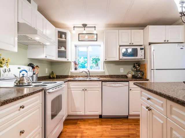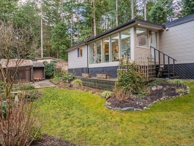 This gorgeous & beautifully maintained home is 1298 sqft with 3 bdrm, 1.5 baths located in the quiet Maple Glen MHP in Lower Lantzville. This home is a gardener’s paradise with meticulous landscaping in a fully fenced yard w/ 2 sheds & a det 1 car garage. Perennials are incl in the price. The home has undergone extensive renovations over the years including a custom kitchen, laminate flooring throughout, vinyl windows, and an addition of a 8×15 sun room with access to the rear yard. Tastefully decorated with a modern decor & newer light fixtures. Located on one of the biggest pads in Maple Glen MHP, there is room for RV parking and/or guest parking. Maple Glen MHP is a well managed park, 55+, located minutes away from Woodgrove Mall & other north end Nanaimo shopping as well as the quaint shops of downtown Lantzville. Units rarely come up in this park, so don’t miss your opportunity to live in this tranquil setting. Hurry this one won’t last long. Measure approx,verify if important.
