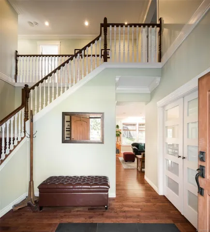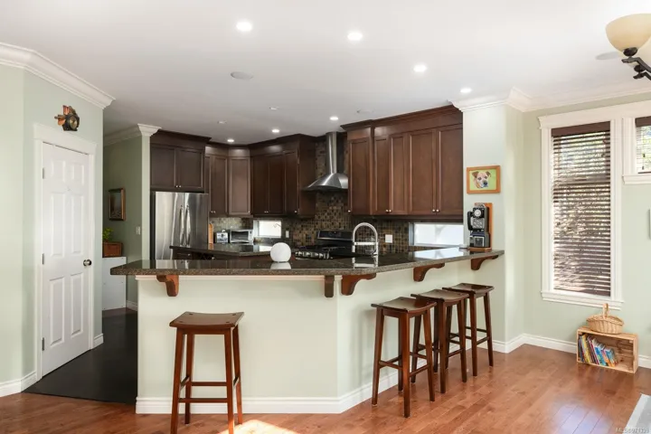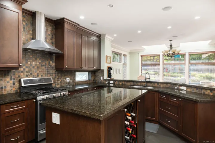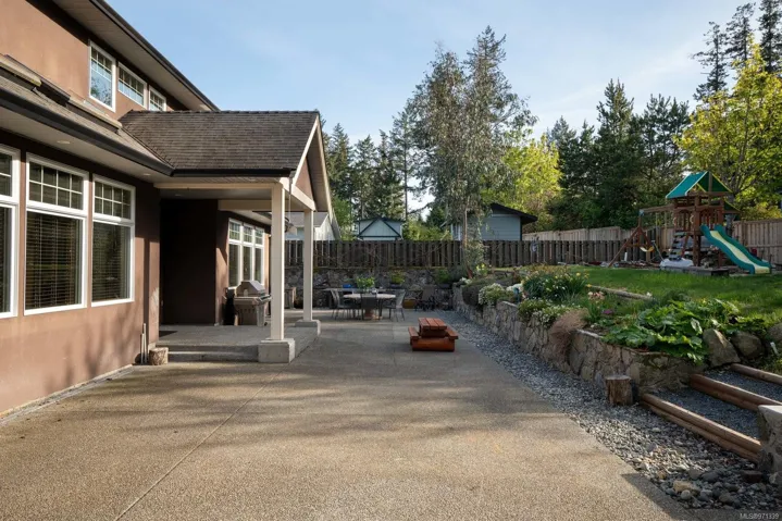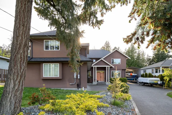 Located in the Bazan Bay area of North Saanich, this stunning 2009 custom-built home offers 5 bed and 4 bath across 3700+ sq.ft. Expansive 17’ ceilings in the entry welcome you, leading to the open-concept design between the living area with gas fireplace, the dining room with backyard access, and the family room. The kitchen, with pantry, overlooks the open-concept area and features S/S appliances, gas oven and granite countertops. Finishing off the main is the office, powder room and mudroom, leading into the 3-car garage. Upstairs is a 4-pce bath, laundry and 3 beds, including the primary, with walk-in closets and a 5-pce ensuite. Located above the garage is the 2-bed, 1-bath in-law accommodation. The west-facing, fully fenced backyard, boasts a sprawling paved patio, gas hook-up for BBQ, garden beds, shed and a kids play area. Additional features include ample RV/boat parking with clean-out hook-up, full irrigation system, heat pump and tankless hot water, to name a few.