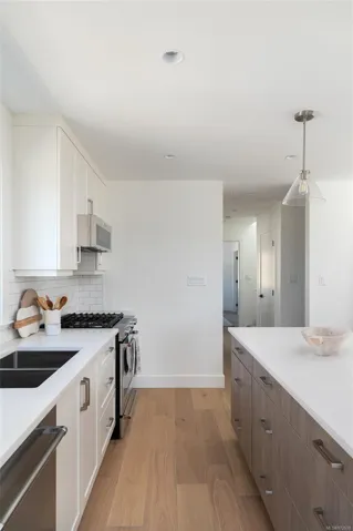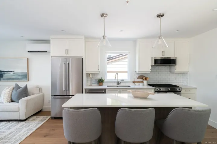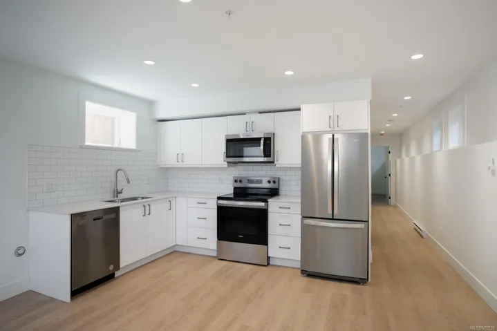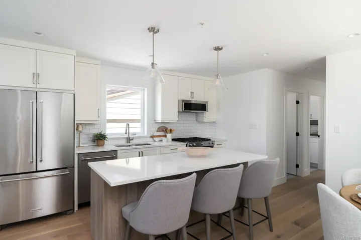 Brand new home built by Garrett Wakefield Construction and designed by Outline Home Design. This stunning 5-bed, 4-bath residence features 2,127 sq.ft of beautifully appointed living space. The main-floor primary bedroom includes a walk-in closet and spa-like en-suite. The kitchen boasts shaker cabinets, quartz countertops, and premium stainless steel appliances. Upstairs, you’ll find two additional bedrooms with attic access for storage and a full bathroom. The lower floor offers a versatile 2-bed, 1-bath suite with a separate entrance. Modern amenities include an electric fireplace, engineered hardwood flooring, an electric heat pump with AC, and a tankless hot water system. Enjoy a fully fenced, professionally landscaped yard with a gas BBQ hookup. Located in charming Sidney, close to shopping, dining, and the waterfront, this home offers the best of the Saanich Peninsula lifestyle.