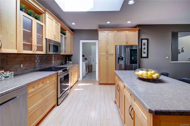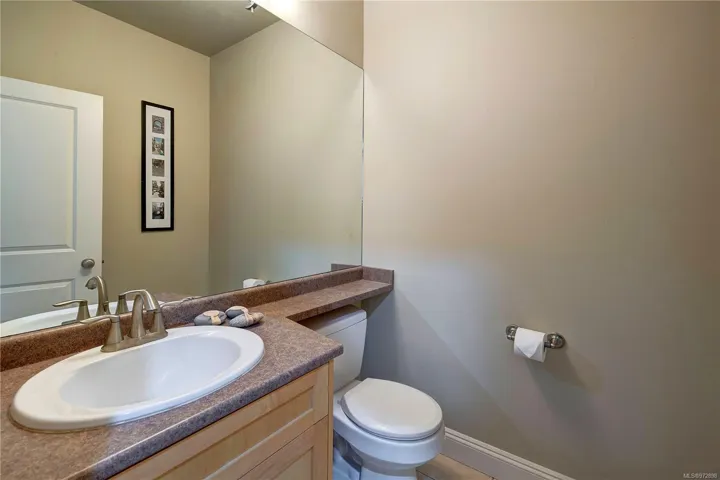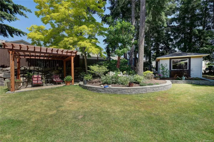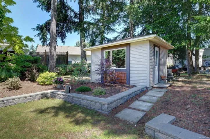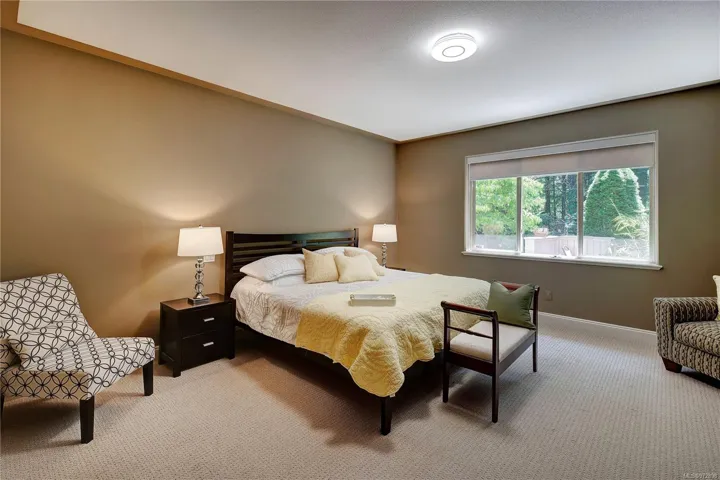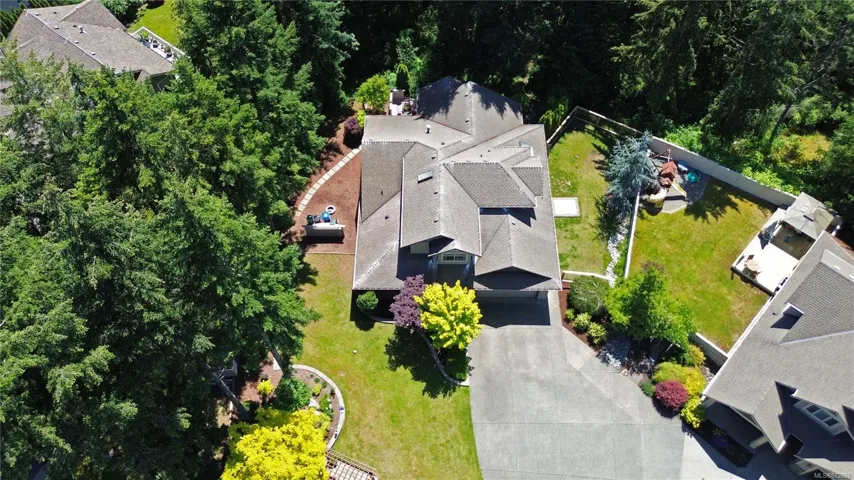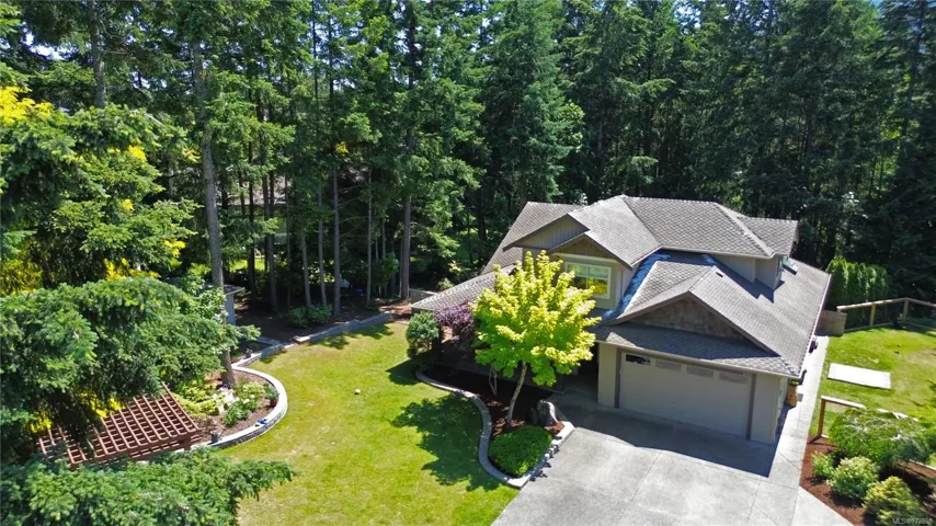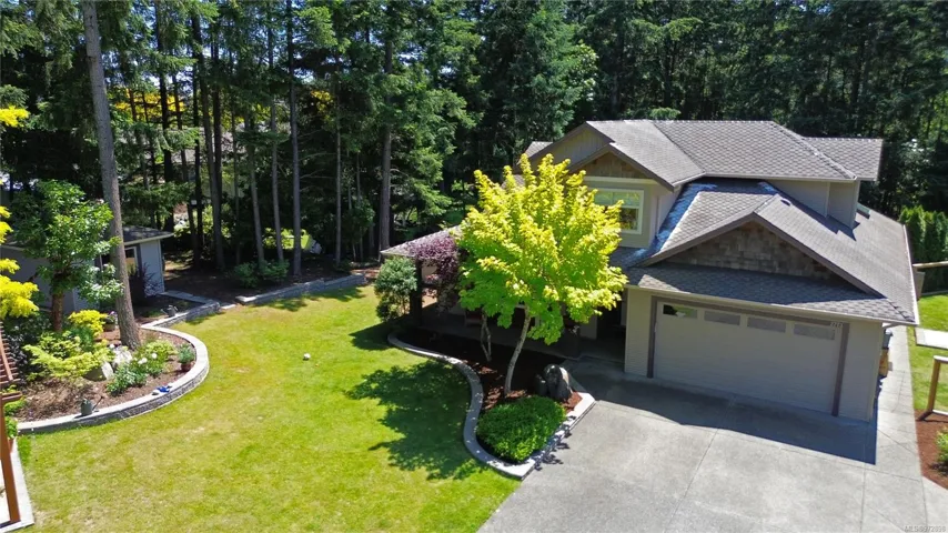Experience an exceptional property boasting one of the area’s largest and most sought-after lots. This rare gem features a spacious layout with 3 large bedrooms, 3 bathrooms and a generous den. The main floor primary bedroom adds remarkable value, it offers a large walk-in closet and an ensuite with a separate shower and bathtub. The living space has an open-concept layout that is ideal for entertaining, with a cozy gas fireplace. The kitchen area has ample countertops for meal prep. The upstairs two bedrooms are accompanied by another bathroom. The property also offers an oversized double-car garage with vast storage space. Outside, the front yard includes rock walls, gardening areas, and a detached workshop, providing an ideal setting for family gatherings and a partially fenced side yard. Moreover, private access to the Nanaimo Parkway trail through an enchanting forested area creates a serene oasis for exploration and appreciation.