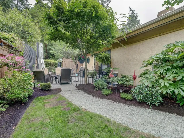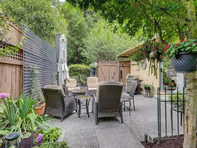 Welcome to this exquisite one level half duplex style townhouse. Every detail of this impeccably renovated residence exudes quality with views of lush green space from every room. Unlike typical townhomes, it offers enough space for all your family gatherings with a large dining area and spacious living room, complete with a custom stone fireplace and elegant built-ins. The kitchen is a true showpiece, featuring floor to ceiling cabinetry, quartz countertops, under-cabinet lighting, stylish glass backsplash, new appliances (2019), and a rangehood like those in luxury homes. Adjacent to the kitchen is the private patio, an ideal sanctuary for outdoor relaxation. The primary bedroom provides versatile space, ideal for a home office, a well-appointed guest bedroom and a large laundry room with abundant storage. Located near all the Belmont & Westshore shopping and amenities, this lock-and-go home is the epitome of refined, one-level living—you must see it to appreciate it, call today!