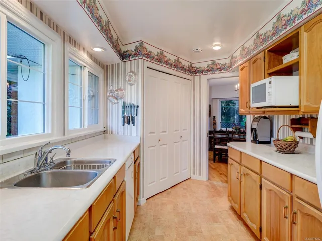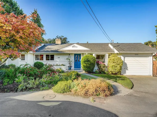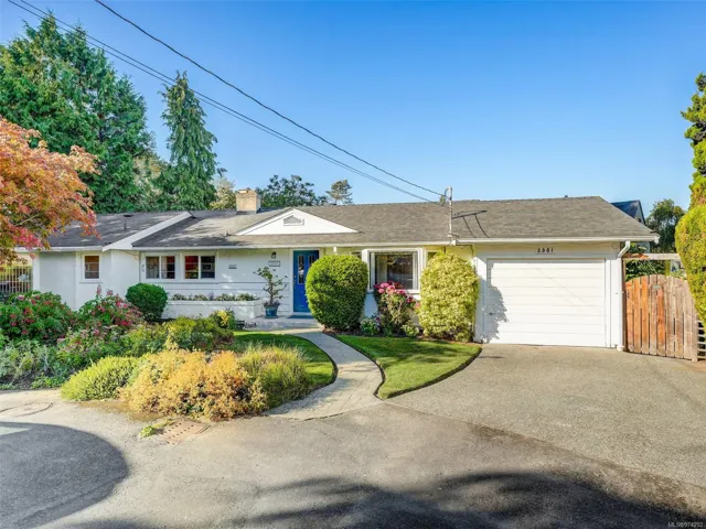Nestled on a charming cul-de-sac, this mid-century 3 bed 2 bath South Oak Bay home offers single level living just one block from the beach at McNeill Bay. The main living and dining areas boast large floor to ceiling windows overlooking the backyard, creating bright open spaces perfect for entertaining, featuring hardwood floors and an alabaster fireplace at the heart. A thoughtfully designed kitchen offers ample cabinet and counter space. The south end addition creates plenty of options, dedicate this as your primary suite with 3pc ensuite, skylights and cozy fireplace or utilize the space as a family room or home office, with 2 additional beds and a 4pc bath at the north end of the home. Lovely gardens envelope the home and provide a private and peaceful setting. Enjoy proximity to numerous beaches, parks and lookout points, Victoria Golf Club, Oak Bay Marina and of course the plethora of shops and amenities in the Oak Bay Village. Proudly offered at $1,595,000.