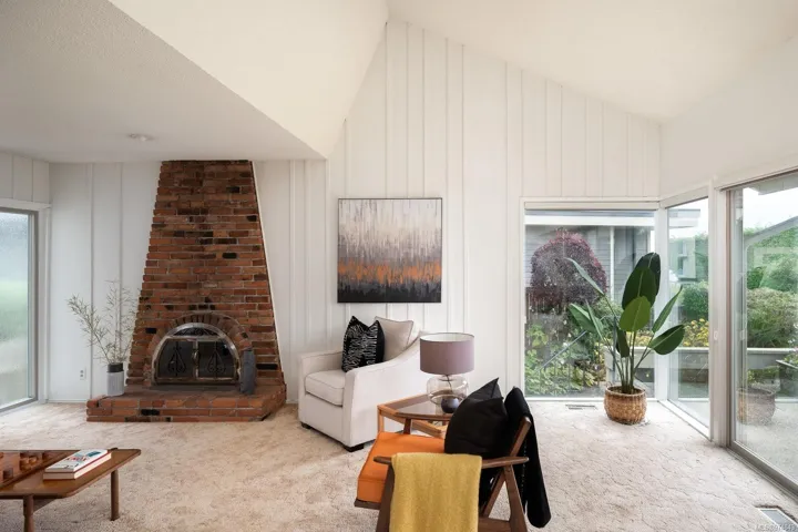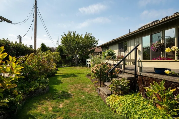Discover the charm of this midcentury modern rancher, perfectly positioned in an exclusive enclave within one of Sidney’s most desirable neighborhoods. Just steps from the beach, this home captures glimpses of the ocean, creating a serene backdrop for coastal living. Designed for effortless, one-level living, the spacious layout features 9-ft and vaulted ceilings, floor-to-ceiling windows, and an atrium that fills the interiors with light. The flow from room to room is perfect for both daily living and entertaining, enhanced by entertainment-sized decks that overlook the south-facing backyard. Outdoors, the beautifully landscaped grounds include a tranquil Japanese garden in the front yard, offering a peaceful retreat. Located on a quiet cul-de-sac, this property combines privacy with a sense of community. With its timeless design and ample potential, this home invites you to bring your decorating or renovation ideas and create a personalized sanctuary that reflects your unique style.