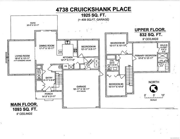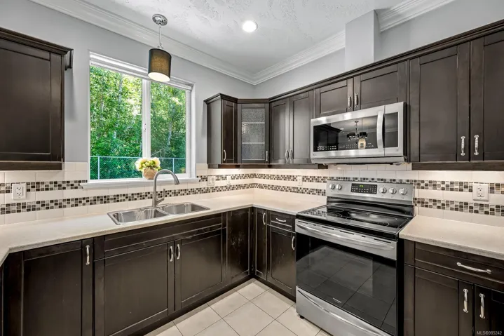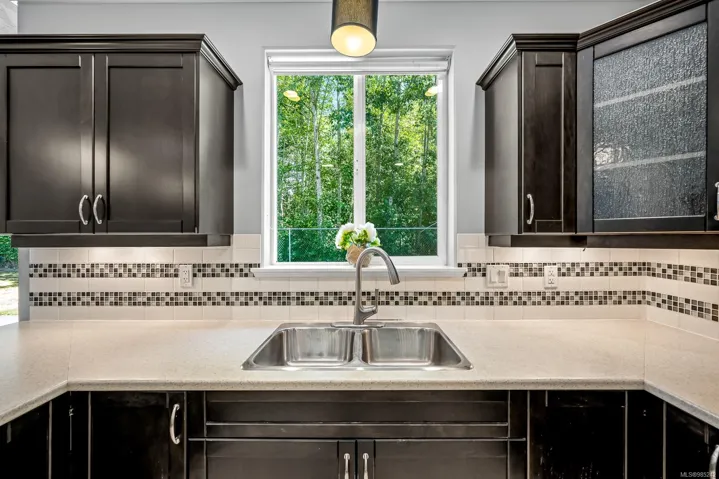 East Courtenay quiet cul-de-sac. The backyard is very private and has mature trees in the backyard as the home backs onto treed park/greenspace. 4 spacious bedrooms. Vaulted ceiling in the living room, 9 foot ceilings on the main floor, heat pump with air conditioning, gas fireplace, double garage. Kitchen features tiled backsplash, tiled entry, and the 4th bedroom or den on main floor. Fenced private yard with garden shed. Walk to all schools, college hospital, and aquatic center. Includes 5 appliances. Walking trails entrance at the other end of the cul-de-sac- stroll past past ponds with ducks. Built in 2009. Quick possession available.