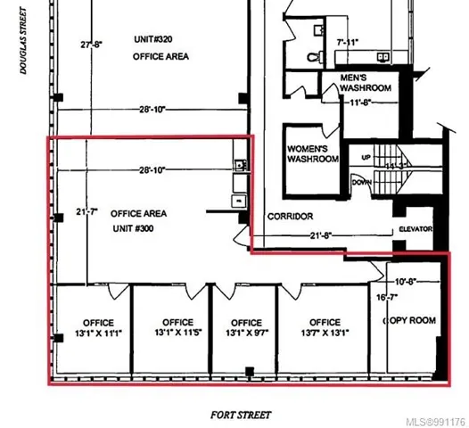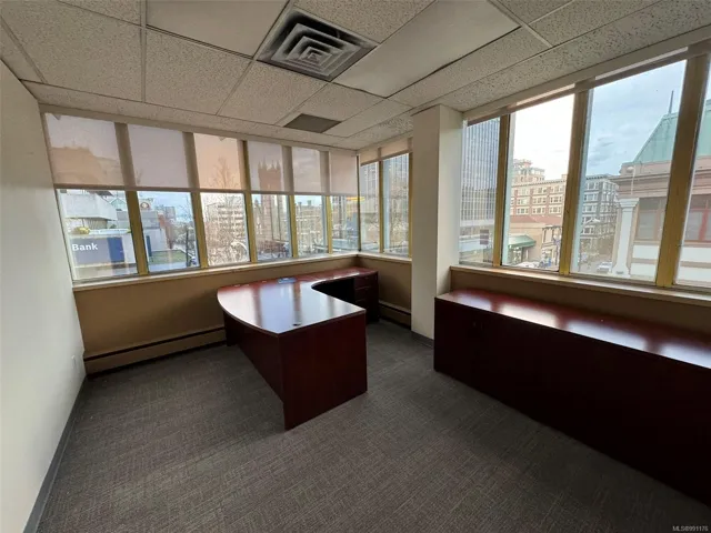 Superior location on the top floor at the corner of Fort and Douglas, opportunity to occupy turn key 3rd floor office in well managed building. The 5 offices and open work area benefit from ample natural light from the south and west facing windows, also offering excellent views of downtown Victoria’s busiest streetscape. A kitchenette is also included in the suite. Common washrooms close by in the hallway. Utilities included in the additional rent.