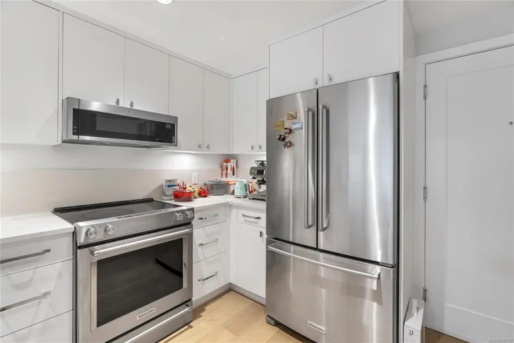 Location, Location, Location!! Welcome to The Affinity! This modern 1-bedroom PLUS DEN, 1-bathroom condo offers 738 sqft of contemporary living space with a south-facing balcony that brings in plenty of natural light. Built in 2023, this like-new energy-efficient home features hardwood flooring, and a central air heating/cooling system for year-round comfort. The sleek kitchen is equipped with high-end stainless-steel appliances and quartz countertops. Additional perks include in-suite laundry, secure underground parking with EV charging, and a separate storage locker. The Affinity is pet-friendly with no age or rental restrictions and full home warranty coverage. Located in the desirable Gordon Head area, close to UVic, parks, recreation centre, restaurants, and shopping. This is an ideal home for first-time buyers, investors, or those looking to downsize. Do not miss this opportunity! (Tenanted. Month-to-month contract. $2400 plus utilities.)