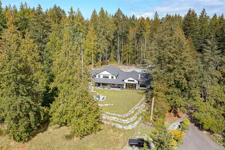Prepare to be impressed by the quality & thought that went into this architectually designed custom home in desirable Ardmore. Tasteful finishings combined with a spacious layout & carefully placed on just over an acre you’ll find a perfect balance between community & privacy. A grand entrance leads to the open main living area with 16′ ceilings, picture windows, gas fireplace, exquisite kitchen with a butler’s pantry & high end appliances. The main home provides a luxurious primary suite on the main level, options for office space, flexroom and loads of storage! The 2 storey, 2 bed/2 bath carriage house for exended family, guests or revenue will impress. Beautiful south gardens with raised beds & a wholesome rustic feeling that brought you to the country in the first place! An incredible shop for the mechanic/hobbyist exceeds expectations! A 3 car garage & a massive driveway offers RV parking plus! It’s an easy commute to Victoria & the airport ferries & Sidney are minutes away.