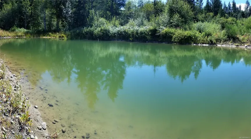 It has some good qualities but there is work to do. You can legally live in your RV here while building a house – check with CVRD. You will need a water system & Septic. It’s Five + acre property set back from the road. Seasonal stream & Large pond with water license. Power to building site. The land Gently slopes to the south. Very sunny & Warm Here. Plenty of area to build a house (or 2) and about nature and privacy.