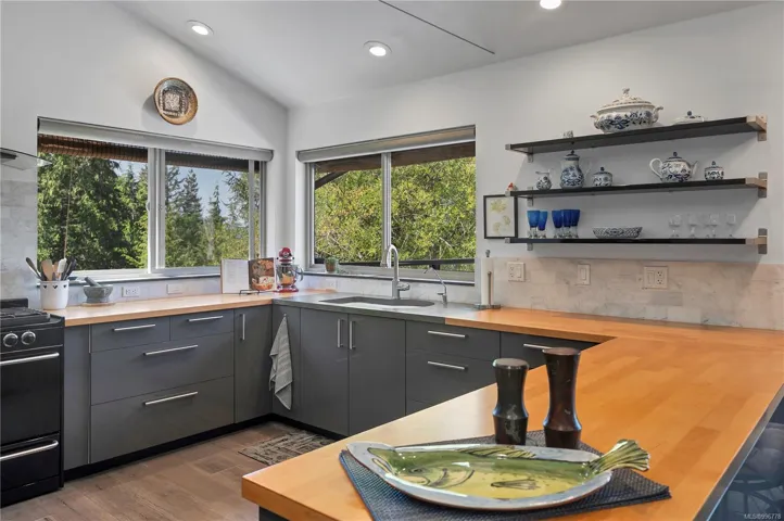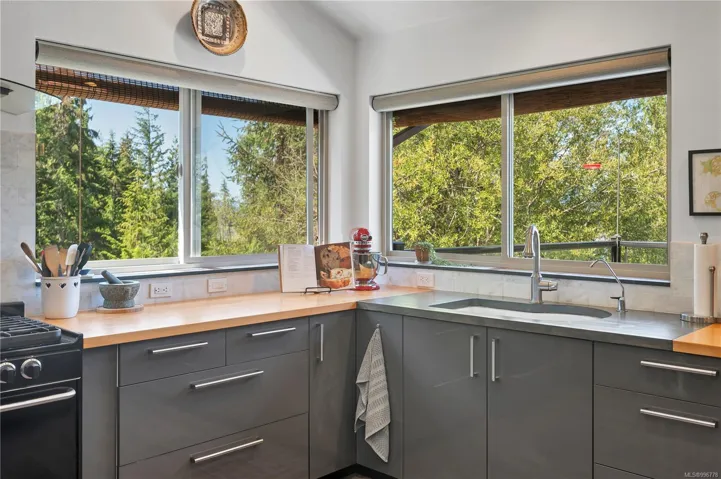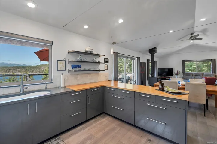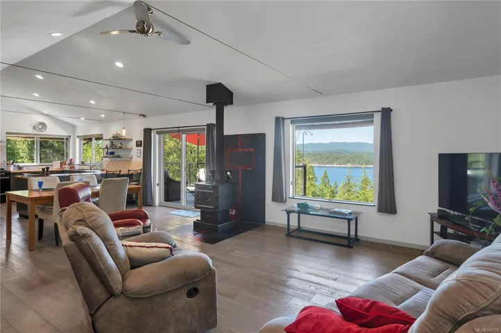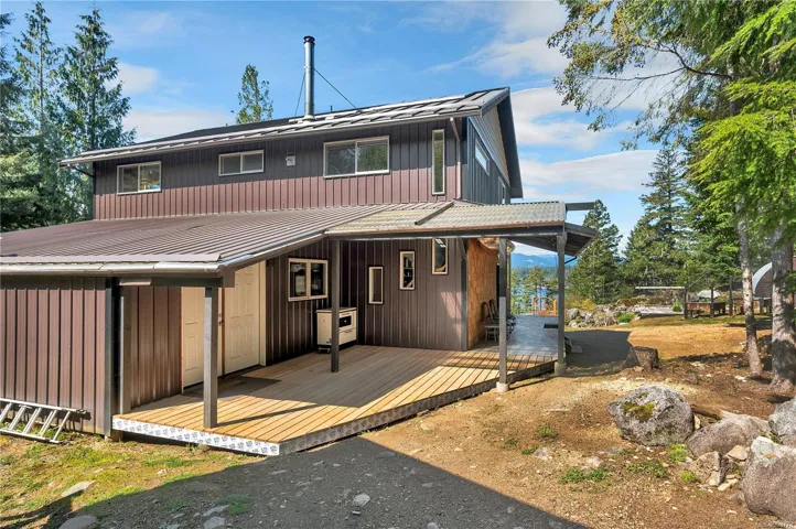 Read Island custom built home on 3.7 acre off-grid, highbank oceanfront property overlooking King Island Bay! This 2,400 sq ft 2 level home features a low maintenance design with metal roof & siding & aluminum deck. The lower floor of the home offers a covered deck/entry, canning kitchen with oven & prep sink, spacious family room with woodstove, 1 bedroom with 3pc ensuite & large pantry. On the upper floor you’ll find the inviting open floor plan living room/dining room/kitchen with vaulted ceilings, woodstove & sliding door to the upper floor deck overlooking the ocean. There are 2 more bedrooms & a 3pc bathroom also on this level. The sale includes most furnishings & off-grid equipment to run the power to the property. The 3.7 acre property boasts panoramic views across Hoskyn Channel, an established fenced garden with hot house & greenhouse, and is mostly in a natural state with a nice mix of mature trees. Come enjoy peaceful off-grid island living!