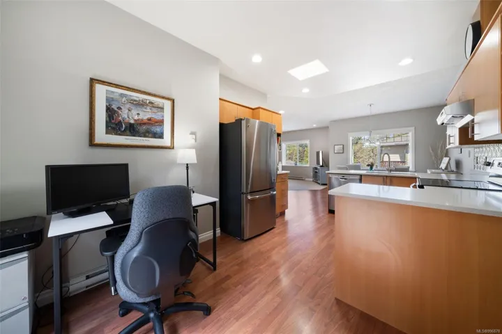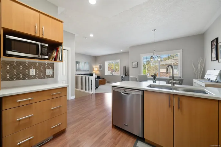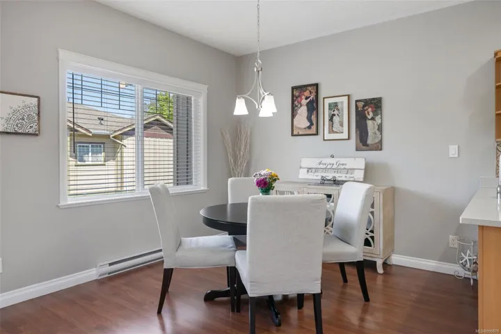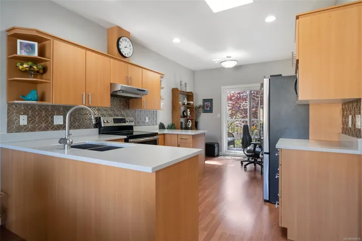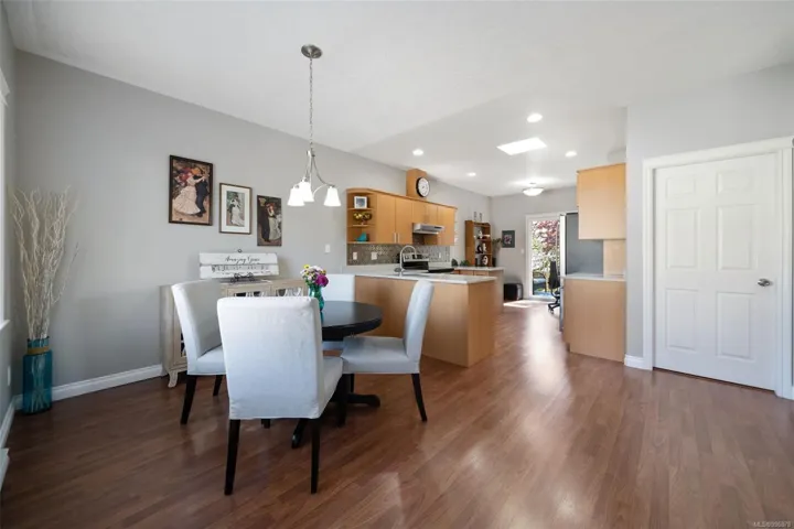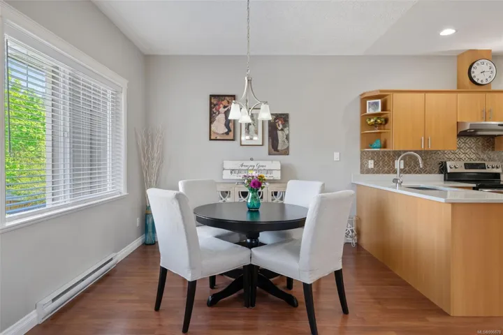 Discover the perfect place to call home in this quiet, family-oriented community. This bright and spacious 3-bedroom, 2-bathroom townhome is tucked away from the main road and may be the best location in the complex. The large private backyard is perfect for kids to play and for hosting family gatherings. Inside, you’ll find a welcoming open floor plan with 9’ ceilings, skylights, and plenty of natural light. The kitchen features durable Corian countertops and stainless steel appliances, while hardwood floors add warmth on the main level. With a garage, driveway parking and excellent schools just minutes away, plus quick access to downtown Langford amenities and Langford Lake, everything your family needs is right here!