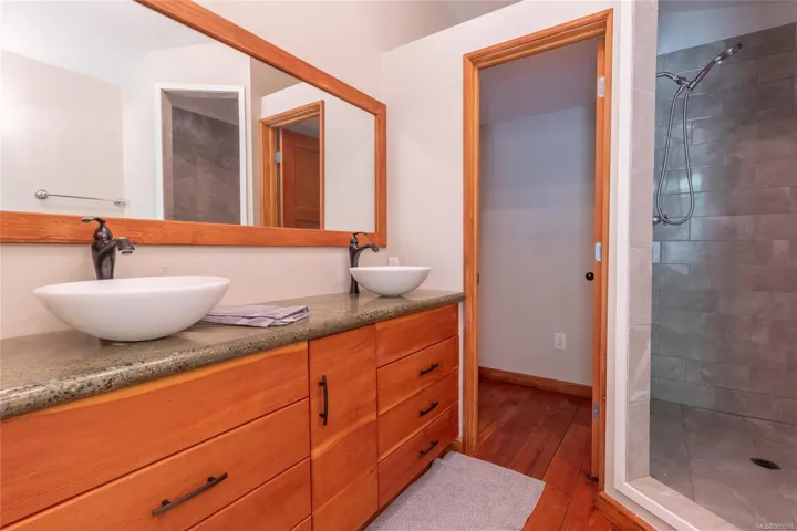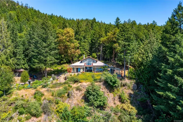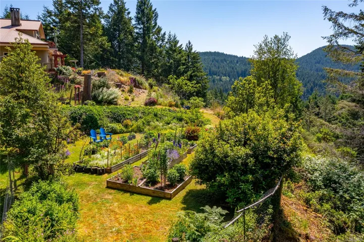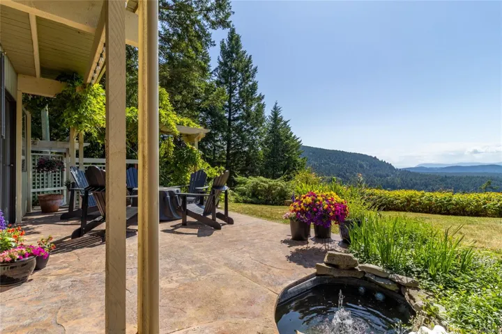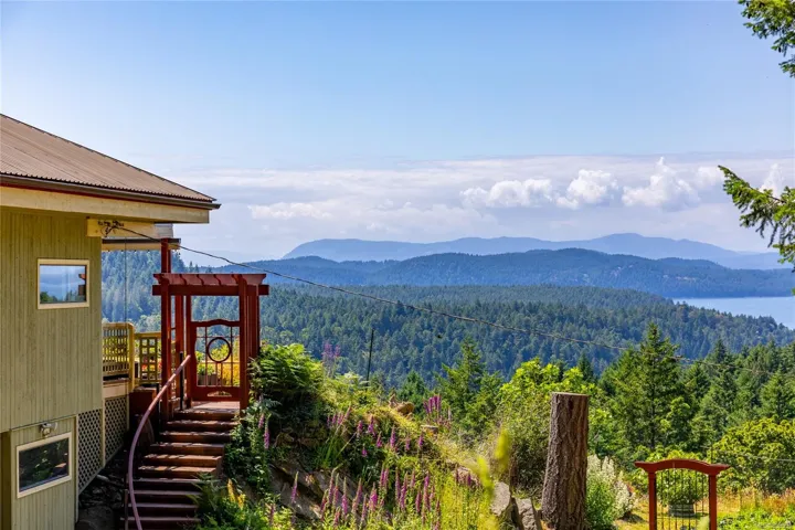 Large Acreage! A quaint country driveway will wind you through this 38.5 acre property to the spectacular mountain top home where you will enjoy breathtaking panoramic views from Valley to Ocean. This character home and its patio face west to maximize amazing sunset views. It is currently a family home but has B&B potential. The zoning also allows for a cottage to be built. The upper level is a magnificent master suite which includes an ensuite and walk in closet. The main floor houses two more bedrooms both with ensuites. The garden level is self contained with a roughed in fourth bedroom and fourth bathroom. The main living area rolls from livingroom to kitchen to diningroom to sunroom from which you can access the patio and gardens. There are many private hiking trails to be enjoyed as well as a large natural pond on the property. Privacy abound; Come see this “One of a Kind” homestead!