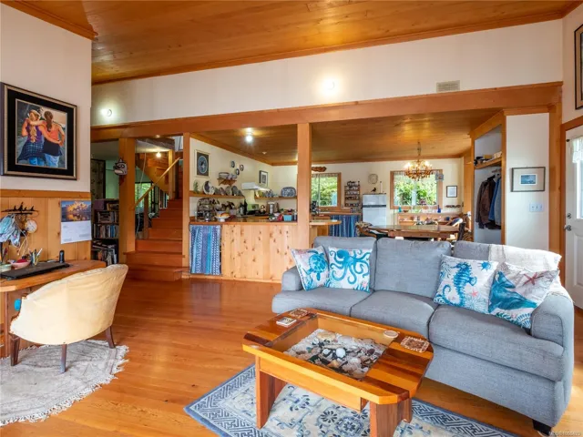 This oceanside, owner-built, off-grid acreage home with a view of islands, Mt. Stevens, and passing whales is designed for turn-key year-round living. It features a generous dock to secure your boats. A newer aluminum ramp leads to shore and the two and a half story home. Locally milled lumber and thoughtful design are evident throughout. Three ground floor entrances open into painting and pottery studios, and stairs to the main floor. An open concept kitchen/dining/living room, recreation room, and primary bedroom, each access the spacious deck above the foreshore and dock. An arched window by the tub in the bathroom allows you to stargaze while bathing and upstairs are two more bedrooms and a second bathroom. Fully integrated new 18KW generator, solar panels and battery bank provide year-round electricity. This home has wood and propane hot-water baseboard heating, on-site water supply, woodshed, kiln, shrubs and an extensive flower/vegetable garden.