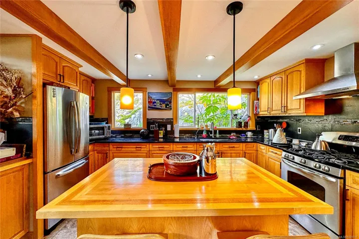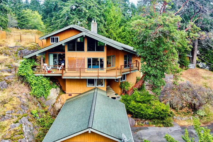 Remarkable ocean-view home overlooking Gowlland Harbour on Quadra Island’s west side. This stunning family residence features post and beam construction with high vaulted ceilings. The lower level includes a spacious family room, a bedroom, and a guest suite with a four-piece bathroom and access to a private deck. The main level offers an open floor plan encompassing the kitchen, dining, and living areas. The kitchen boasts oak cabinets, a custom wood island, tile flooring, and stainless steel appliances. A sliding door from the dining room leads to a large front deck with breathtaking ocean views. The sunken living room showcases a floor-to-ceiling rock fireplace. Situated on a beautifully landscaped 0.4-acre lot, this property has great potential as a B&B. Conveniently located midway between Quathiaski Cove and Heriot Bay, it is about a 5-minute drive to either location and less than a 5-minute walk to a marina.