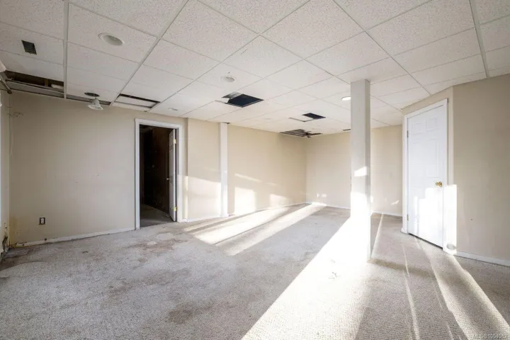 This court-ordered foreclosure sale is for a 1991-built, single-family bungalow located in a mature neighborhood at 1526 Stag Road, Campbell River. The home features three bedrooms, two bathrooms, multiple skylights, and a walk-out basement with a family room, two additional bedrooms, and a bathroom. With 1,168 sq. ft. above grade and a 1,152 sq. ft. basement, the house sits on a 7,637 sq. ft. lot zoned R-I. Deferred maintenance is evident throughout – damaged siding, unfinished deck, stained carpet. The property is sold “As Is Where Is” – Thanks Luke