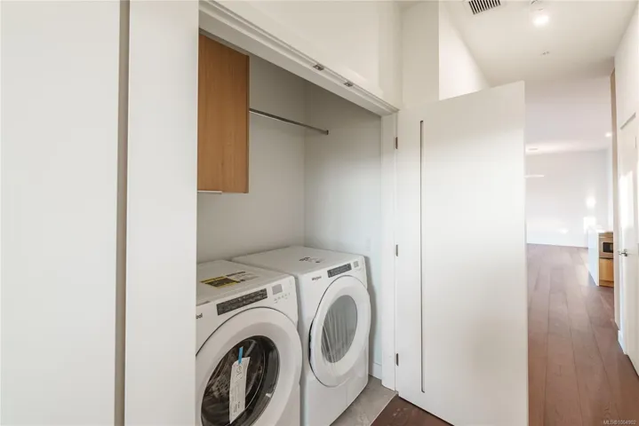 Welcome to Unit 108 at The Rise on Fifth, Sidney’s only new steel and concrete homes by Mike Geric Construction. 2 Parking stalls! This spacious 3-bedroom, 2-bathroom northwest corner unit on the ground floor offers a bright, open-concept layout with a large gourmet kitchen featuring quartz waterfall countertops and a built-in Fisher & Paykel appliance package. The private patio extends your living space, perfect for outdoor relaxation. Spa-inspired bathrooms include floating vanities, tiled walk-in showers, and a deep soaker tub. Building amenities feature energy-efficient heating and cooling, home automation, underground Klaus parking, storage lockers, bicycle storage, and a pet washing area. Enjoy stunning Haro Strait views from the common rooftop patio. Just steps from the beach and close to Sidney’s vibrant downtown, Unit 108 offers the perfect blend of luxury and coastal charm.