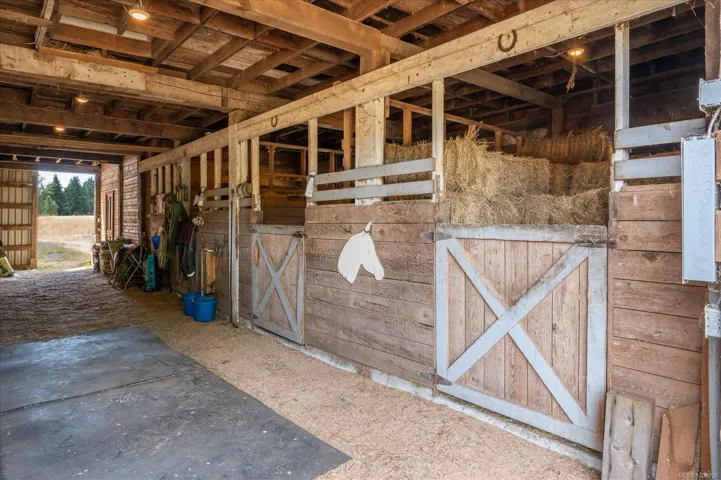 This stunning 20-acre equestrian property is the epitome of rural charm and functionality. At its heart is a character farm home featuring three bedrooms and two bathrooms, offering a warm and inviting atmosphere for family living. The expansive six-tall barn is a standout feature, boasting a heated tack room, office space, and a hayloft, catering to all your equestrian and farming needs. The property includes six individual grazing paddocks, ideal for keeping horses or livestock, as well as a massive 2,200 square-foot shop for additional storage or workshop space. With city water and a well-designed riding ring equipped for year-round use with proper drainage, the property is perfectly situated for equestrian enthusiasts. The property benefits from ALR zoning and currently holds farm status, encompassing about 10 acres of fertile hayfield. Located just minutes from shopping and essential amenities, this property seamlessly combines country living with the convenience of urban access.
