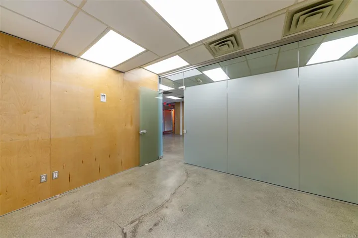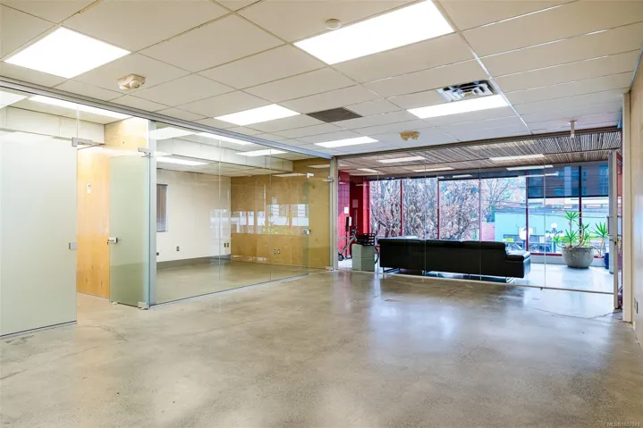 Second floor, SE corner office with central work area and two private offices. Floor to ceiling, south-facing glass partition walls and high-end acoustic ceiling tiles (renovated as owner-occupier suite in 2020). Generous building amenities include rooftop patio, showers, and secure indoor bike storage. Second floor has a large shared kitchen with ping-pong table and additional seating; and shared washrooms. Elevator access. Hydro is included in additional rent. Ideally located on the Fort Street corridor just steps from the central business district. Zoning is CBD-1. Available now.