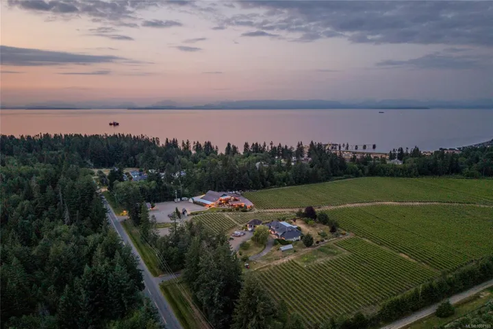 Presenting the offering of 40 Knots Estate Winery – an award winning winery and cidery. This beloved Comox Valley business is situated on an idyllic 23.5 acre estate. The offering includes the owned property, lease on the neighbouring property, equipment, business assets, and inventory (in addition to the listing price). The property has 20.5 acres of vineyard planted with cool climate varietals. The property structures include the 8,003 sf winery building (home to the tasting room and production facilities), the event centre with 1,600 sf of dining space, the 4,741 sf country estate house, a 1,200 square foot workshop/shed, a washroom facility, and a pump house for irrigation. The character estate house has 4 beds and 5 baths. The property has municipal water and a well maintained septic system. The Comox Valley is an emerging wine region, offering superior growing conditions to other areas in Canada. The winery is located close to the Comox Valley Airport, CFB, and Highway 19