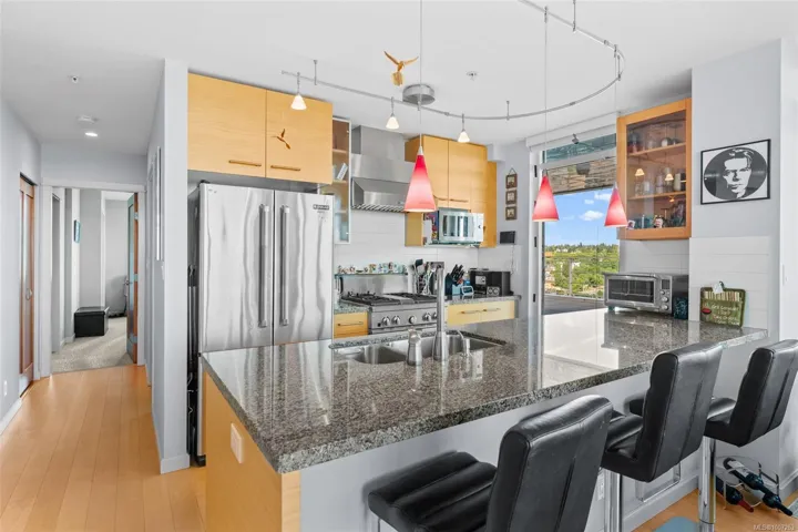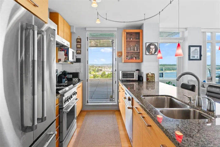 Welcome to Unit 805 at 38 Front Street in the prestigious Pacifica building—where luxury meets lifestyle in the heart of the downtown Nanaimo waterfront. This 2-bedroom, 2-bathroom condo offers just over 1,000 sq ft of modern living, steps from the seawall, Maffeo Sutton Park, fine dining, shopping, and the Port Theatre. The show-stopper? An incredible 2,500 sq ft private patio with panoramic, unobstructed views of the ocean, city, and Mount Benson. This view is an experience! Whether you’re entertaining or enjoying a quiet moment outdoors, this space is unmatched. Live the West Coast dream with walkable convenience and stunning views in one of Nanaimo’s most desirable addresses. Easy sea plane access, Hellijet, and Hullo ferry to Vancouver. Included are 2 underground parking spaces and a storage locker. Home can be purchased with furnishings. All measurements are approximate and should be verified if important.