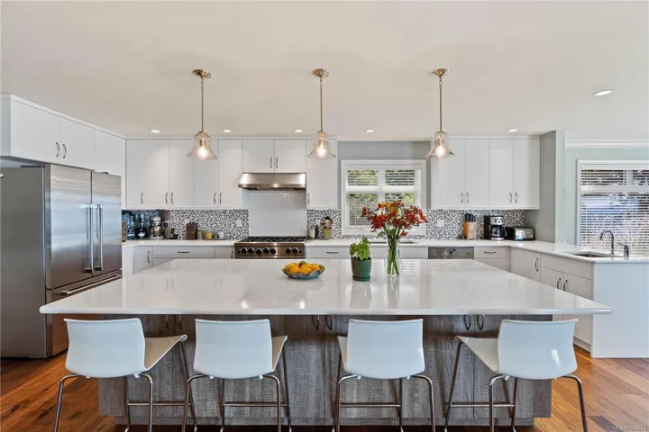 Welcome to 879 Canso Road—a breathtaking oceanfront retreat on stunning Gabriola Island! This private 2.2-acre estate showcases panoramic ocean, mountain and city views, vibrant sunsets, and abundant wildlife. Meticulously maintained, the property includes a quality-built main home, spacious carriage house, studio, and shop—ideal for artists, entrepreneurs, or potential B&B income. Features include HVAC, rainwater collection with 13,000-gal cistern, filtration system, central vac, 100 KVA generator, security system, and gated entry with intercom. The chef’s kitchen boasts high-end appliances, a 6-burner commercial stove, quartz countertops, and an electric fireplace. Enjoy mature landscaping, fruit trees, berries, garden beds, and unfiltered outdoor oceanfront views. Experience spa-like coastal living in a truly special location. Words and photos can’t capture it all—come see it for yourself!