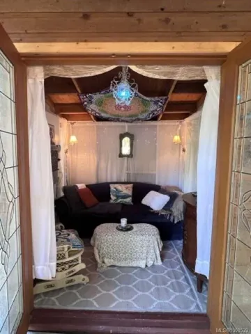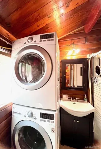 Beautiful Cedar Panabode log cabin for sale on Gulf Island, originally built in 1962 and relocated to Mudge Island in 2000. Surrounded by Cedar, Fir, and Arbutus trees, this cozy retreat offers peace and privacy across from the ocean on a quiet, dead-end road. Large windows invite views of the water and vibrant birdlife including woodpeckers, hummingbirds, bluebirds, towhee, nuthatches, eagles, and herons. At night, enjoy stargazing from the deck, and on rare occasions, catch a glimpse of the Northern Lights. Two ocean access points directly across the road offer tide pool exploration, wildlife viewing of Orcas, humpbacks, otters, seals, and sea lions, and unforgettable sunsets over the water. The newly renovated kitchen features a skylight, large ocean-facing window, LG flat-top convection stove, and red Galanz retro fridge. There are two regular bedrooms and a smaller bunk room ideal for guests or future ensuite conversion.