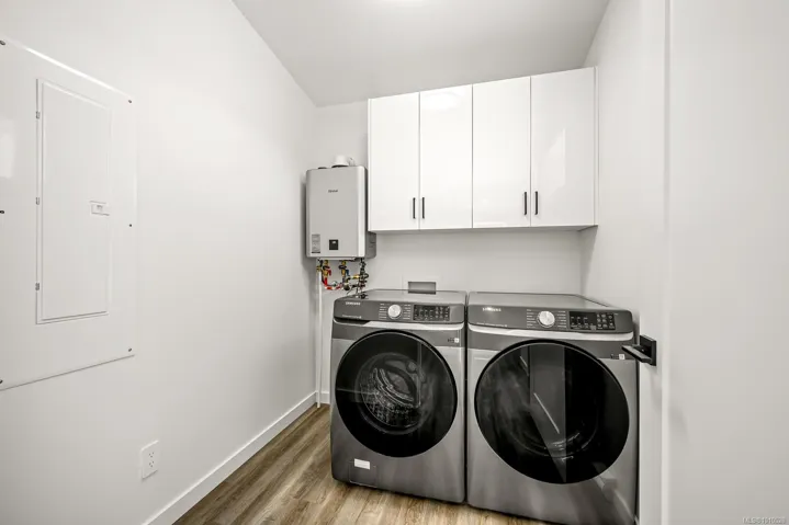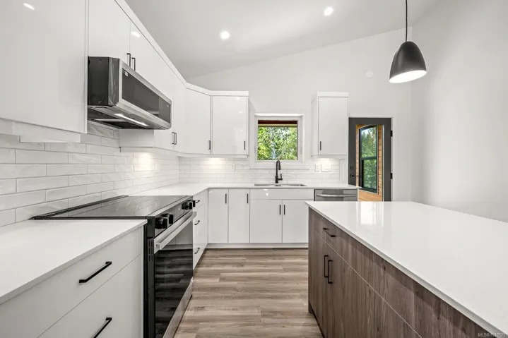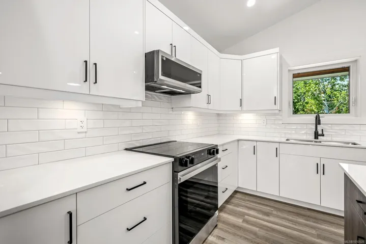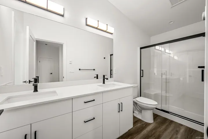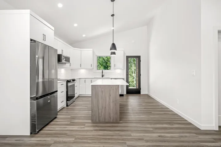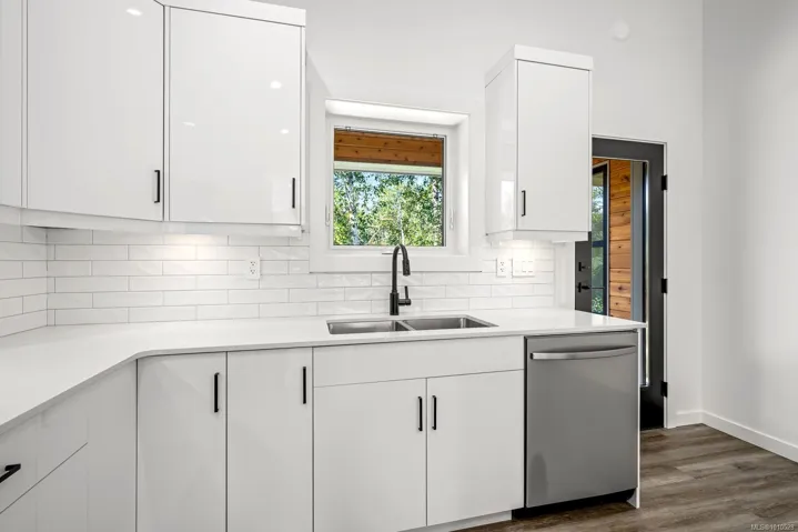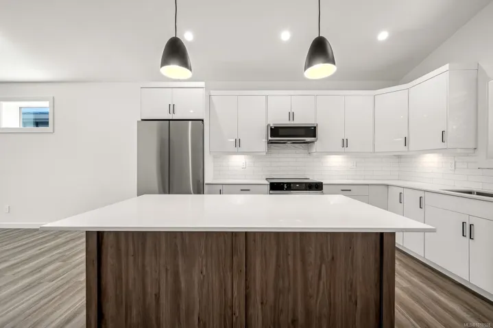 Welcome to the Bennett! You will love our newest layout at the Flats of Cumberland. Spanning an impressive 1,155 sq ft, this 2 bed 2 bath home is simply stunning. Immediately you’ll be drawn to the 12′ vaulted ceilings with plenty of natural light, modern white cabinetry in the kitchen and bathrooms, quartz countertops and accented kitchen island. The black accents pair beautifully with the finishing creating a timeless yet contemporary style. Bask on the sunny southeast facing back patio and enjoy a low low low maintenance yard. FuII appliance package included. Heat Pump as standard. Crawlspace for extra storage. Longer driveway = longer vehicles are no problem. With 4 other layouts available we have what you’re looking for! GST Applies. Book your showing today. More info at www.theflatsofcumberland.ca
