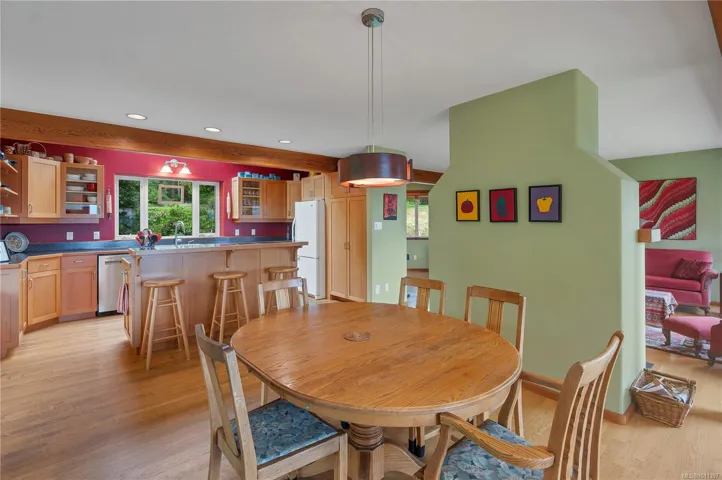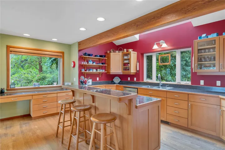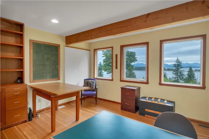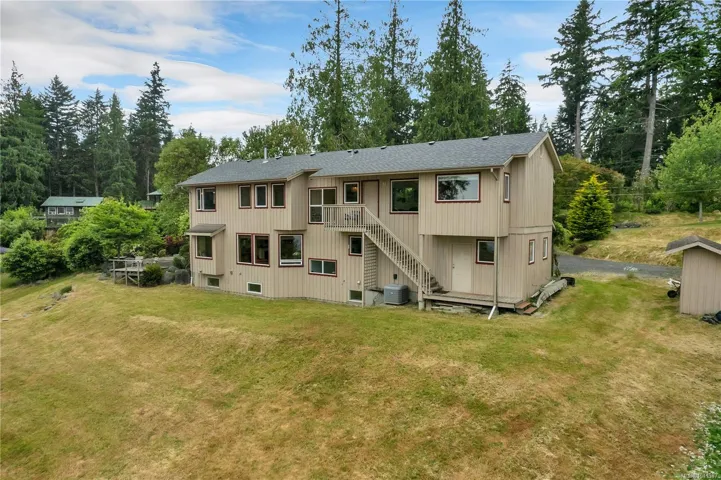 Oceanview home on 1 acre boasting panoramic views across Drew Harbour & Rebecca Spit Provincial Park! This main level entry home with upper & lower floors was custom built in 1997 by reputable local builders. On the main floor you’ll find the living room with large windows offering great ocean views & woodstove. The kitchen has a large island, skylight, Kenwood cupboards & built-in desk. 4 bedrooms & 2 bathrooms are on the upper floor, including the primary bedroom. 2 of the bedrooms & 1 of the bathrooms are accessed off the upper floor family room, with deck & stairs to the yard, this side of the upper floor has great suite potential. The lower floor is the unfinished basement, currently used as storage, plus laundry room. The 1 acre property is nicely terraced with a fenced garden & apple trees, Japanese maple trees, Arbutus trees, a nice mix of rhododendrons & a pond with water feature. Featuring the best views on the island & located in a very desirable neighbourhood in Heriot Bay!