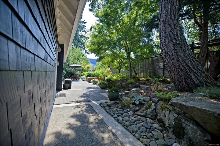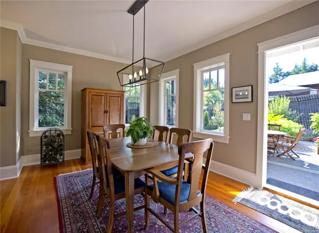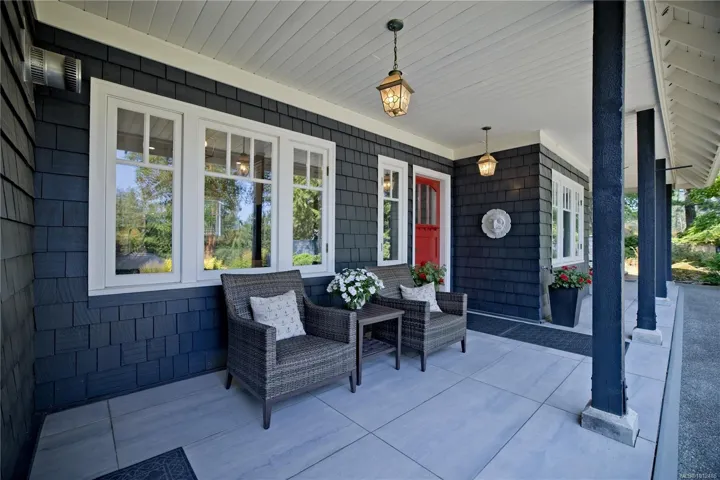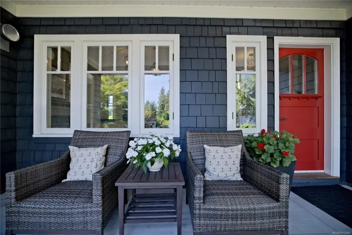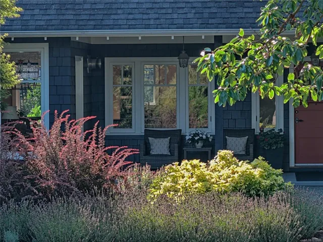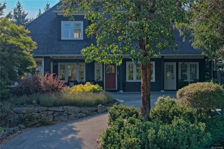 An exceptional ocean view home right in Ganges! Timeless Cape/Craftsman design set in a sea of beautiful gardens, this light filled residence welcomes stylish living with a fine balance of character elements and modern construction techniques. Essentially main level living, the floorpan factors for comfort and convenience. Glass wrapped living room with fireplace. Separate dining area. Custom 2022 kitchen with soapstone countertops and Bosch appliance suite. Quiet den/office space. Main floor principle suite with beautiful bath and private walkouts.Two generous guest bedrooms with ensuite baths are located on the upper level. Walk to downtown or the upper village. Irrigated grounds. Charming kitchen garden. Covered carport. This fine home is a very rare offering – not to be missed!