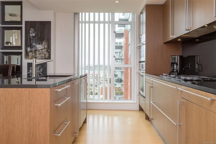 Enjoy panoramic views of the ocean and mountains, stretching across the Olympics, Salish Sea, Victoria’s Inner Harbour, and Downtown Core, all from your private 5th floor balcony. This two bed, two bath home at the highly desirable Bayview One blends luxury and comfort with premium finishes including stone countertops, JennAir stainless steel appliances, gas range, and custom German cabinetry. A thoughtful layout and expansive floor-to-ceiling windows capitalizes on the surrounding views from every room. The primary suite features generous walk-in closets with custom built-ins and flows into a spa-inspired 5pc ensuite. The second bed offers privacy for guests and shared access to the 5pc main bath. Two adjoining parking stalls makes this a rare find! Building amenities include: Geothermal Heating and Cooling; Concierge; Fitness Centre; Hot Tub, Sauna & Steam Rooms; Games Lounge; Outdoor Terrace with BBQ & Fire Pit; Car Wash; Dog Wash Station; and more. Proudly offered at $1,399,900.