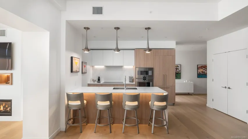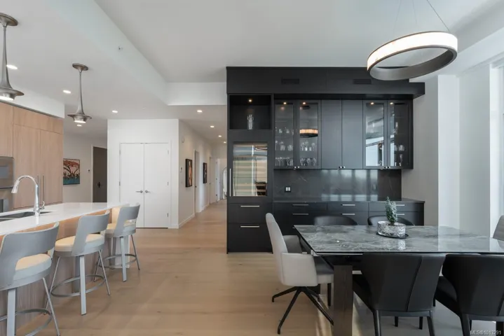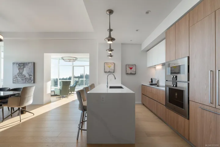 Sophisticated Sub-Penthouse Living at One Bear Mountain. This fully furnished (optional) 3-bed, 3-bath residence offers panoramic mountain views and refined contemporary design. A chef’s kitchen with quartz waterfall island, Gaggenau appliances, and custom Hobson Woodworks bar with Sub-Zero wine storage anchors the open living space, illuminated by floor-to-ceiling windows and a double-sided fireplace. The serene primary suite features a spa-inspired ensuite and walk-in closet. Additional luxuries include 2 parking stalls (1 EV), oversized 10’x10’ storage, and access to world-class amenities—outdoor pool, gym, yoga studio, and sky lounge. Golf membership eligible. A rare opportunity to embrace elegance at Bear Mountain.