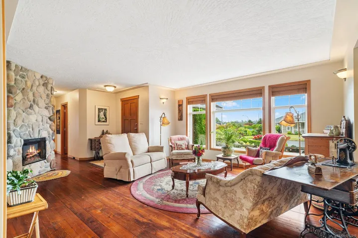 OH SAT 11:45AM-1PM 3DWALK-THRU, PHOTOS & FLOOR PLAN online. Welcome to 1064 Miraloma! This charming 3-4BED-3BATH Chartwell Rancher offers peaceful living in one of Qualicum’s premier locations. Perfectly situated 2km from the ocean & centrally located, combining comfort & convenience. Inside you’ll find an inviting layout featuring a spacious living rm w/a new gas FP & surround, elegant dining area, & a bright kitchen updated w/SS appliances. The generous primary bdrm includes a spa-like ensuite, additional bdrms are ideal for family, guests, or hobbies. A den perfect for a home office, studio or 4th bdrm. Freshly painted interiors create a modern, welcoming feel, & large windows capture serene views of the treed backyard. Thoughtful updates including gas furnace, exterior paint, built-in vacuum & more. W/direct access to nearby trails, quiet streets & natural surroundings, this property offers a perfect blend of tranquility & convenience! Experience West Coast living at its finest!