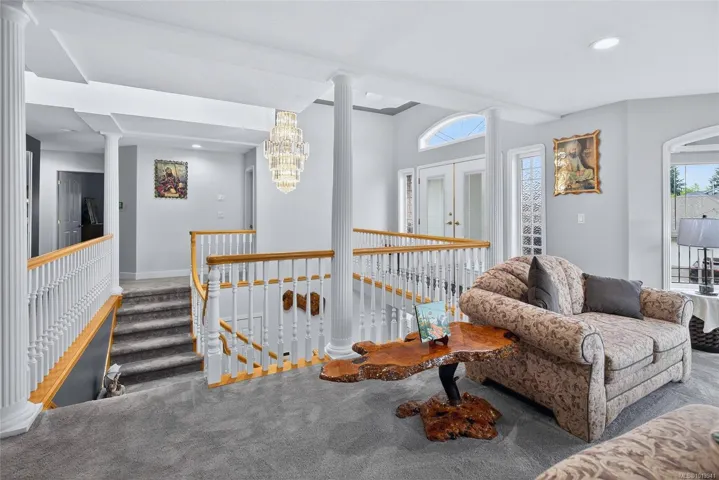 Beautifully cared-for one owner residence where timeless design meets modern comfort. From the moment you enter the grand foyer, you’re greeted with soaring ceilings, abundant natural light, and a warm sense of home. The main level offers a thoughtful layout designed for both everyday living and entertaining. A spacious living and dining area with a cozy gas fireplace flows seamlessly into the inviting kitchen and breakfast nook, while a separate family room provides the perfect place to relax. Three generous bedrooms, 2 full ensuites and a main bath complete the main floor. Downstairs, versatility abounds with a second family room, a 4-piece bathroom, laundry, a 4th bedroom and a self-contained 1-bedroom in-law suite with private entrance. This home has been thoughtfully updated with comfort in mind: a newer heat pump and furnace, hot water on demand, and remote-control blinds! Every detail reflects the pride of ownership.