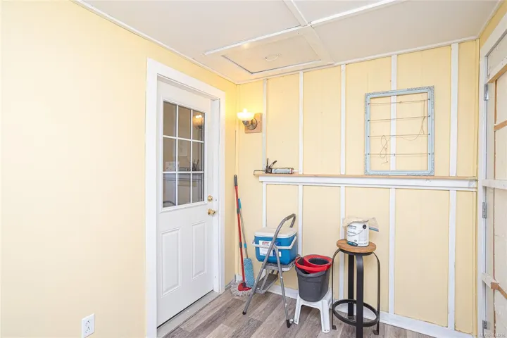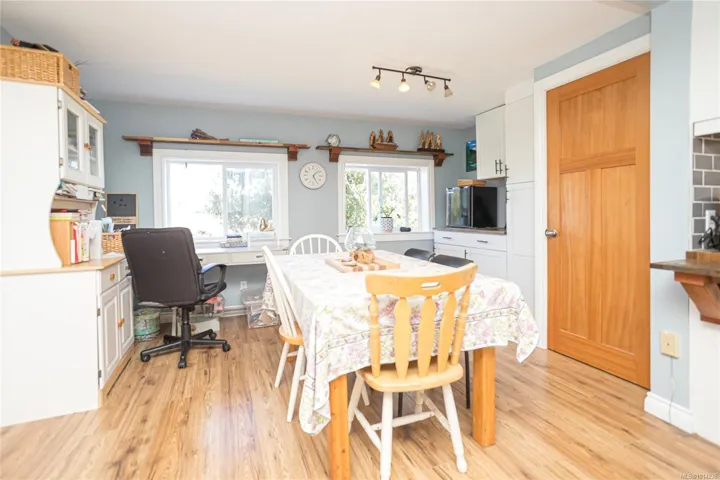 Nice solid 4 bedroom 1.5 bath family home on a private level and landscaped .43 acre lot backing on to a greenspace – Centrally located this home is in desirable Sunny Saltair and only minutes to walking trails and not far from the sea -ideally located between the towns of Chemainus and Ladysmith which offer good schools and shopping- Nice kitchen with open concept dining area that leads to a good sized living room with detailed fire surround and bright with lots of windows – The primary and second bedroom are also on the main as well as a an office/flex space and sun porch leading to a very large deck-downstairs are two very good sized bedrooms as well as a family room, 2pce bath and access to the yard and a couple of really good workshop areas -large level yard with some fencing, a covered parking area, a fenced garden and greenhouse area and room to build a good sized shop if that’s what you are looking for – A good family home with room for all – Easy to show and ready to go –