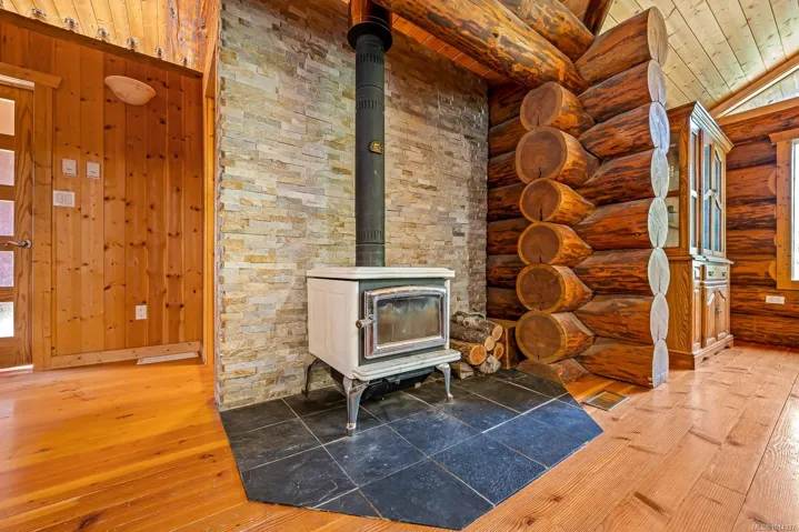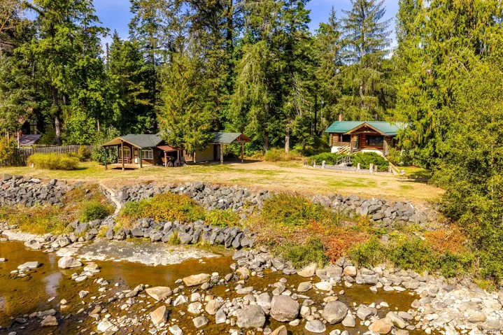Rare opportunity on the pristine Oyster River—175 feet of private waterfront on 1.22 acres at the quiet end of a no-through road. This Craftsman-style log home offers vaulted ceilings, fir floors, and an open layout with the kitchen and living room between two separated bedrooms. A wood stove and heat pump ensure year-round comfort, and a metal roof adds lasting durability. Enjoy river views from expansive covered decks off both the home and detached studio. The walk-out basement offers laundry, storage, and development potential. The gently sloping, gated property features fruit trees, a studio with a 3-piece bath, propane fireplace, and electric heat—ideal for guests or creative use. A large shop with high ceilings, wood stove, and attached carport adds workspace and parking. Steps to swimming holes and fishing, minutes to amenities, and close to Saratoga Beach, marina, golf, and easy access to Courtenay, Comox, and Campbell River.