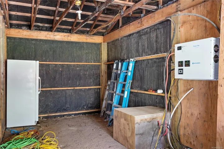 Waterfront acreage. Beautiful, contemporary, Off Grid 2,400 SQFT home thoughtfully built at the top of the gently sloping property, with accessible waterfront & incredible OCEAN VIEWS. Off grid never looked so good & there is a 2500 sq foot second building, opportunity abounds…yoga or artist studio, workshop, host retreats. Main house is a modern design with skylights, large windows & vaulted ceiling to let in natural light. Large primary bedroom complete with a lovely ensuite bathroom. Enjoy creating meals in the well designed kitchen. The lower level is open to more development and with 10 foot ceilings, potential is there. Live green full time or purchase as a retreat. Recently installed metal roof. Septic system installed. New easy, handsfree solar power system installed. Property also has a two bay garage, fully equipped. The generator onsite is housed in a space designed with walls to stop any noise. This property is insurable and mortgage-able LIVE ON THE ISLAND