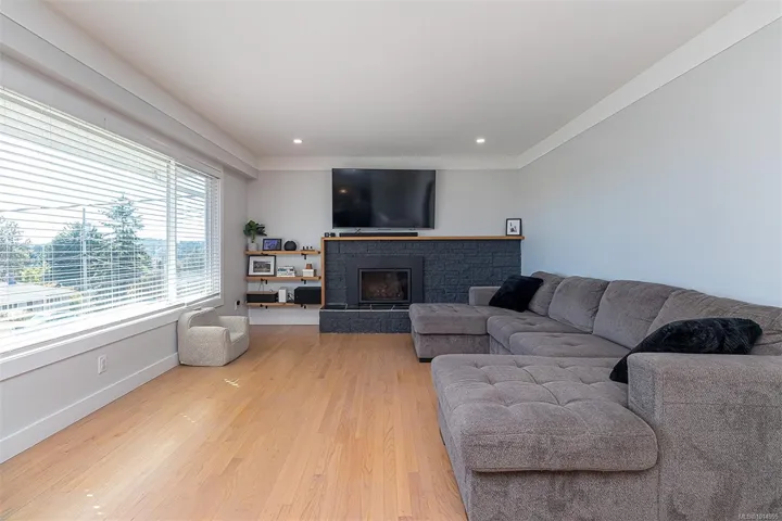 This meticulously maintained and thoughtfully updated home has it all. Recent upgrades include, flooring, kitchen with eating bar, all windows, two hot water tanks and heat pump. The kitchen, dining area and living room (with fireplace!) all feature large windows with views to Olympic mountains giving the home an open airy feeling. The lower level has a large welcoming entry leading into family room with a additional bedroom and convenient 2 piece bathroom. The fully contained one bedroom suite gives great flexibility for guests or rental income. Large, sun drenched, flat lot with new shed, fruit trees and room for carriage house (check regulations with Municipality).