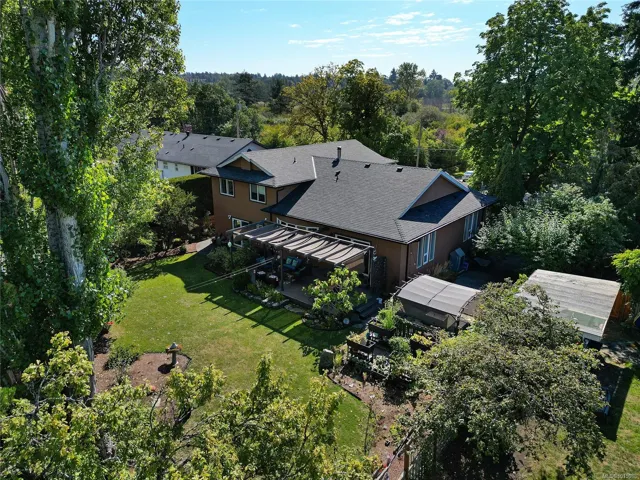 This special property is located at the end of a quiet no-through street adjacent to tranquil Swan Lake Nature Sanctuary. With nearly 2,800 square feet of living space boasting an open-concept main floor with 2 sitting rooms, home office, living room, dining, and thoughtfully designed kitchen with quartz countertops, breakfast bar and an array of cabinets equipped with wall oven, warming drawer and refrigerator. Wood floors throughout the main. The oversized deck seamlessly extends living space outdoors with pergola and a peaceful view of the landscaped yard including garden areas and storage shed. FOUR bedrooms located up including primary suite with ensuite as well as a lower level for additional storage. Also featured is a ground-level one-bedroom suite ideal for a nanny, in-laws, teenagers, or extended family. Conveniently situated, providing easy access to the Peninsula, Westshore, downtown Victoria and close to shopping, parks, and the Galloping Goose Trail.
