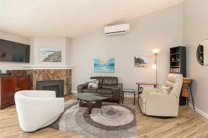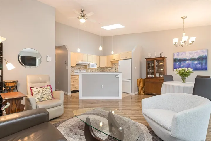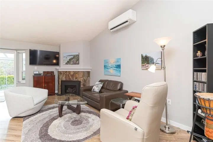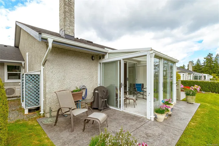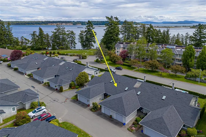OPEN HOUSE SAT OCT 4TH 2:00 – 4:00 Beautifully maintained ONE-LEVEL townhome features new roof, heat pump, new windows, and a proactive strata. Inside, enjoy a bright, airy layout with vaulted ceilings, open-concept living/dining area, and cozy propane fireplace. Updated kitchen and bathrooms, along with laminate flooring and two skylights, create a cheerful, modern ambiance throughout. Year-round sunroom & private outdoor patio with ocean views & landscaped surroundings. Primary bedroom features a renovated 3-piece ensuite and a walk-in closet w/ custom organizers. Enjoy resort-style amenities including an indoor clubhouse with swimming pool, hot tub, sauna, library, lounge, workshop, and guest suite. Take advantage of tennis courts and oceanfront walking paths just outside your door. Complete with a single-car garage & second rentable parking stall – close to shopping, medical services, & public transit. Come live your best life at Water’s Edge Village!