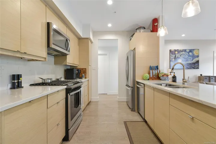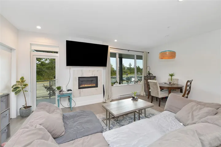 At Regatta Park, life moves at a gentler pace. From your end-unit perch, wake to the sound of owls in the cedars and watch ducks cross the pond as light streams through oversized windows. Stroll the community gardens or nearby trails, launch a kayak at the beach, or cycle the Lochside Trail right outside your door. Back home, enjoy the ease of single-level condo living: a fresh, modern interior boasts wood flooring and quartz counters with an open floor plan anchored by a gas fireplace and a spacious balcony for evening relaxation. The primary features a walk-through closet, en-suite bathroom, and direct balcony access, while the 2nd and 3rd bedrooms offer privacy and flexibility at the other end of the unit. With 2 parking spots, personal bike cages, ample storage, and a well-run, pet and renter-friendly strata, it’s both practical and peaceful. Minutes from ferries, marinas, and Sidney’s shops, yet surrounded by creeks, green space, and wildlife, this is rural living simplified.