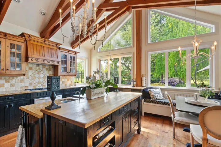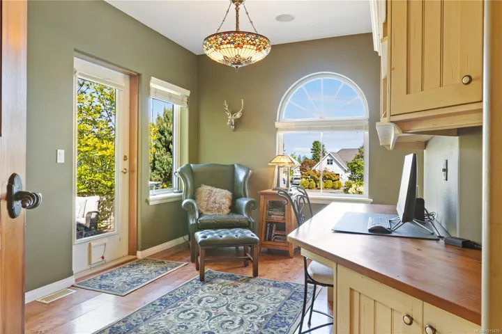 This is a stunning custom built 3100 + sq ft house with double garage, located on one of the most prime and sought after Crown Isle streets. Sitting on a 0.25 acre lot, and surrounded by beautiful gardens, the property backs directly onto the 8th fairway at Crown Isle Golf Resort and has a West facing back yard – perfect for enjoying those sunny summer afternoons on the patio. The property has a very European feel about it, with many custom features including a beautiful back-to-back gas fireplace in the living room, Fir accents and beams, and Pine hardwood flooring throughout the main living area. There are 2 bedrooms on the main level, benefitting from brand new carpeting, including the primary bedroom with en-suite bathroom and walk in wardrobe. A third bedroom has been created upstairs, with its own bath, perfect for guests visiting. The property also benefits from an AC unit, providing cooling for those hot summers, and an expansive crawl space offering plenty of storage.