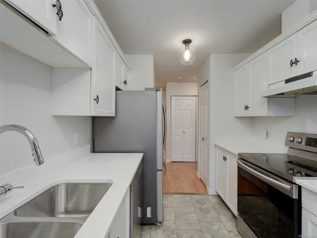 Welcome to this bright and spacious 2-bedroom, 2-bath corner condo in Victoria’s desirable Hillside neighbourhood. Offering 1035 finished square feet, this home has been tastefully updated with fresh paint and modern countertops, creating a warm and inviting atmosphere. The large living area features a cozy gas fireplace and opens onto a sunny patio, ideal for enjoying your morning coffee or a quiet evening read. A smartly designed floor plan provides excellent flow, while the generous primary bedroom includes ample closet space to easily fit a couple’s wardrobe. Additional highlights include in-suite laundry, secure underground parking with a car and dog wash station, and a separate storage locker. Kids and pets are welcome, and extra parking may be available to rent. Located close to shopping, parks, and public transit, this lovely condo offers both comfort and convenience in a central setting.